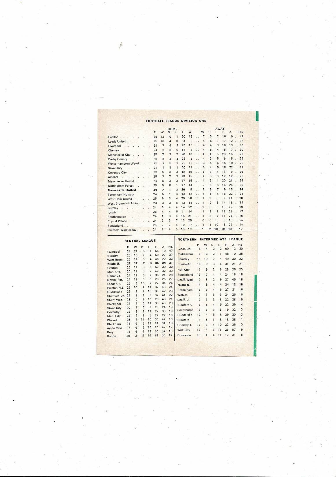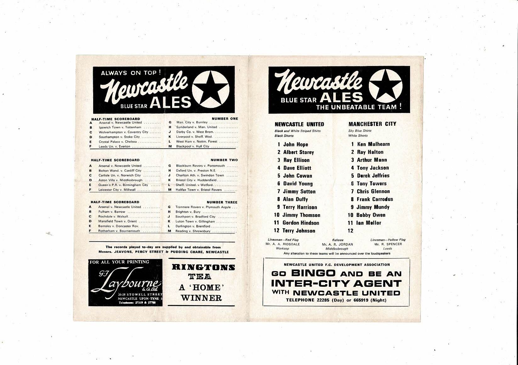 Newcastle United v Manchester City Central League Football Programme 1969/70