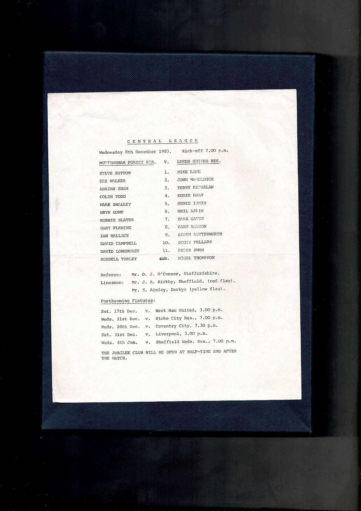 Nottingham Forest v Leeds United Central League Football Programme 1983/84