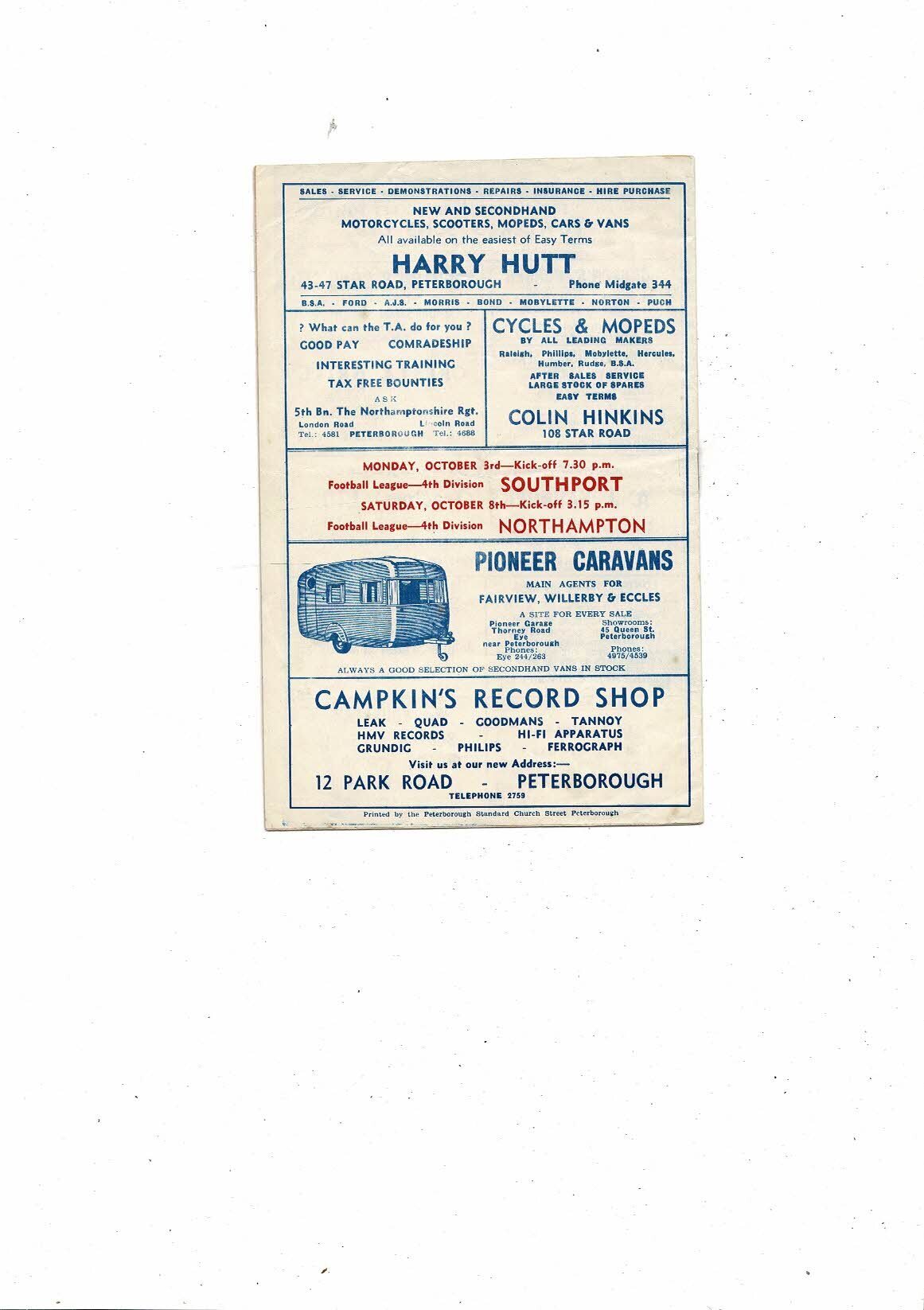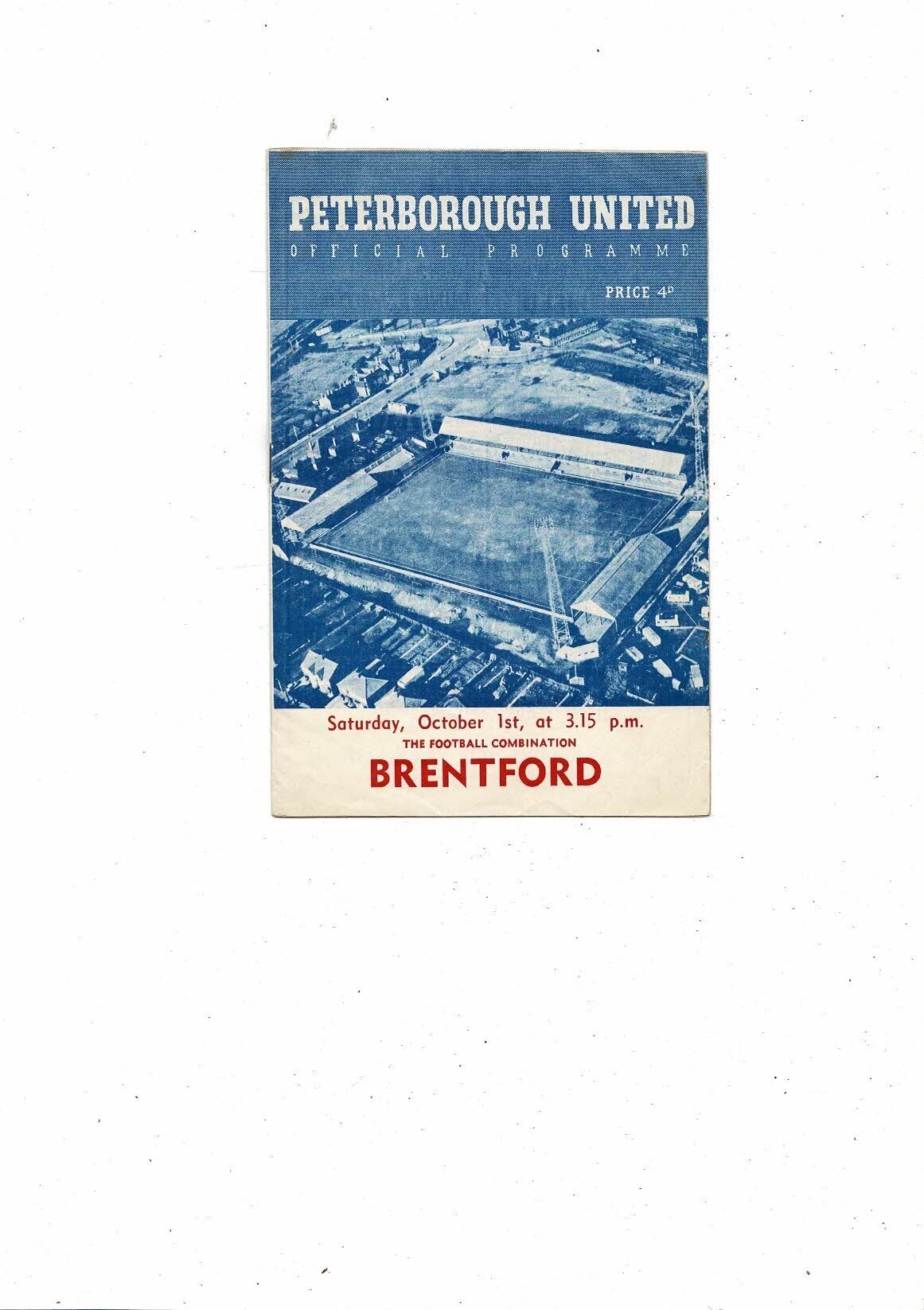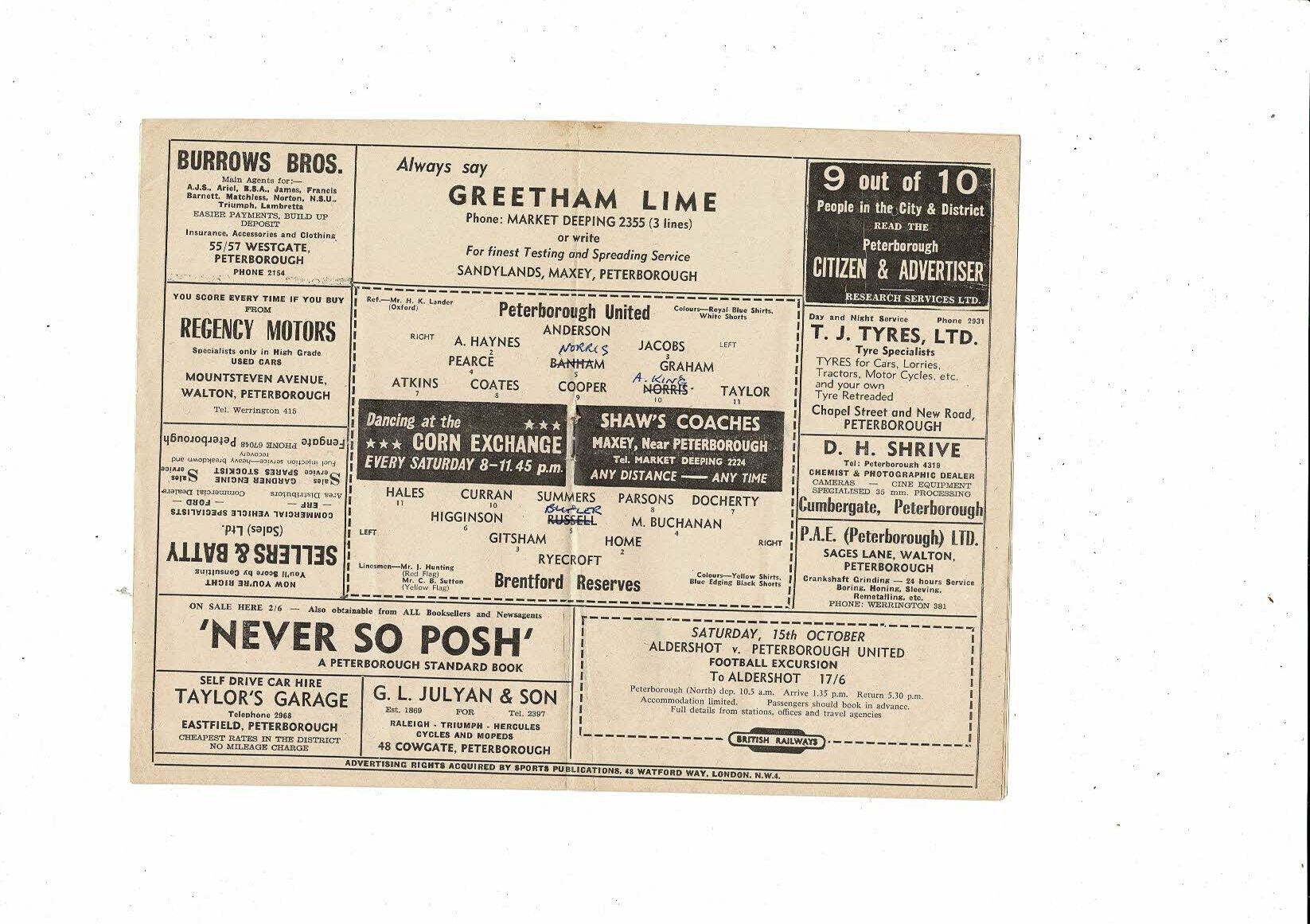 Peterborough United v Brentford Football Combination Programme 1960/61