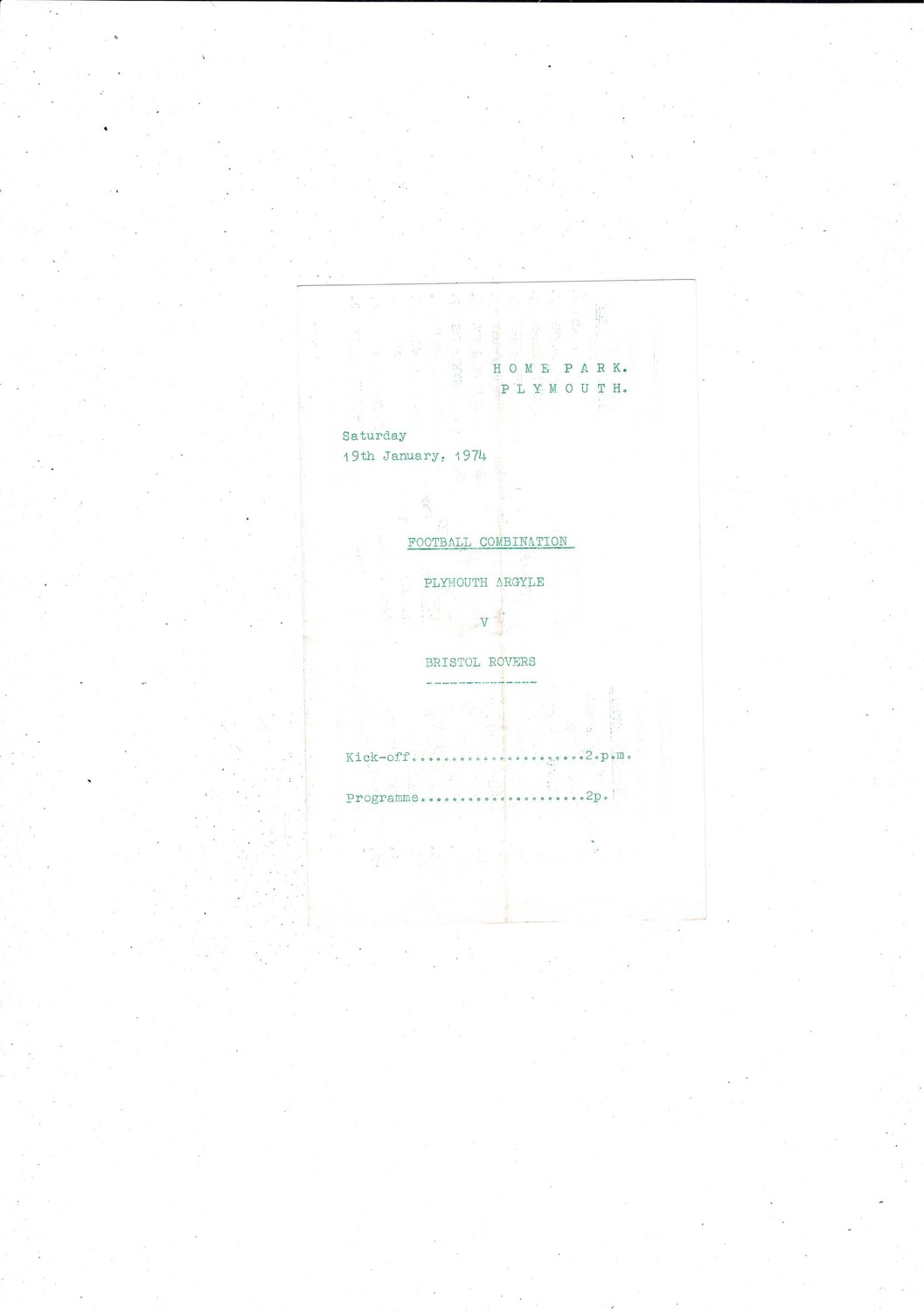 Plymouth Argyle v Bristol Rovers Football Combination Programme 1973/74