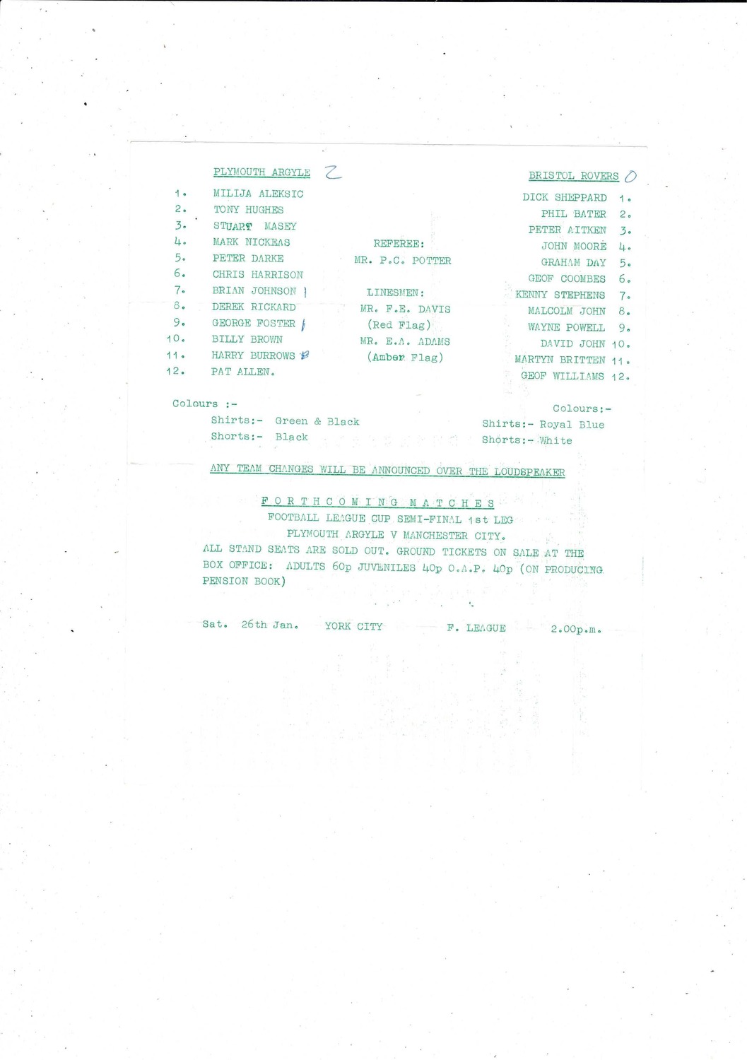 This original 4 page Football Programme is creased also has a fold with score & scorers noted. Please see scans