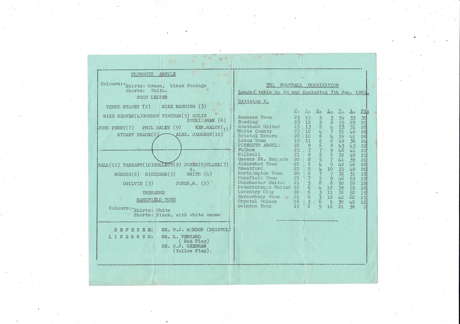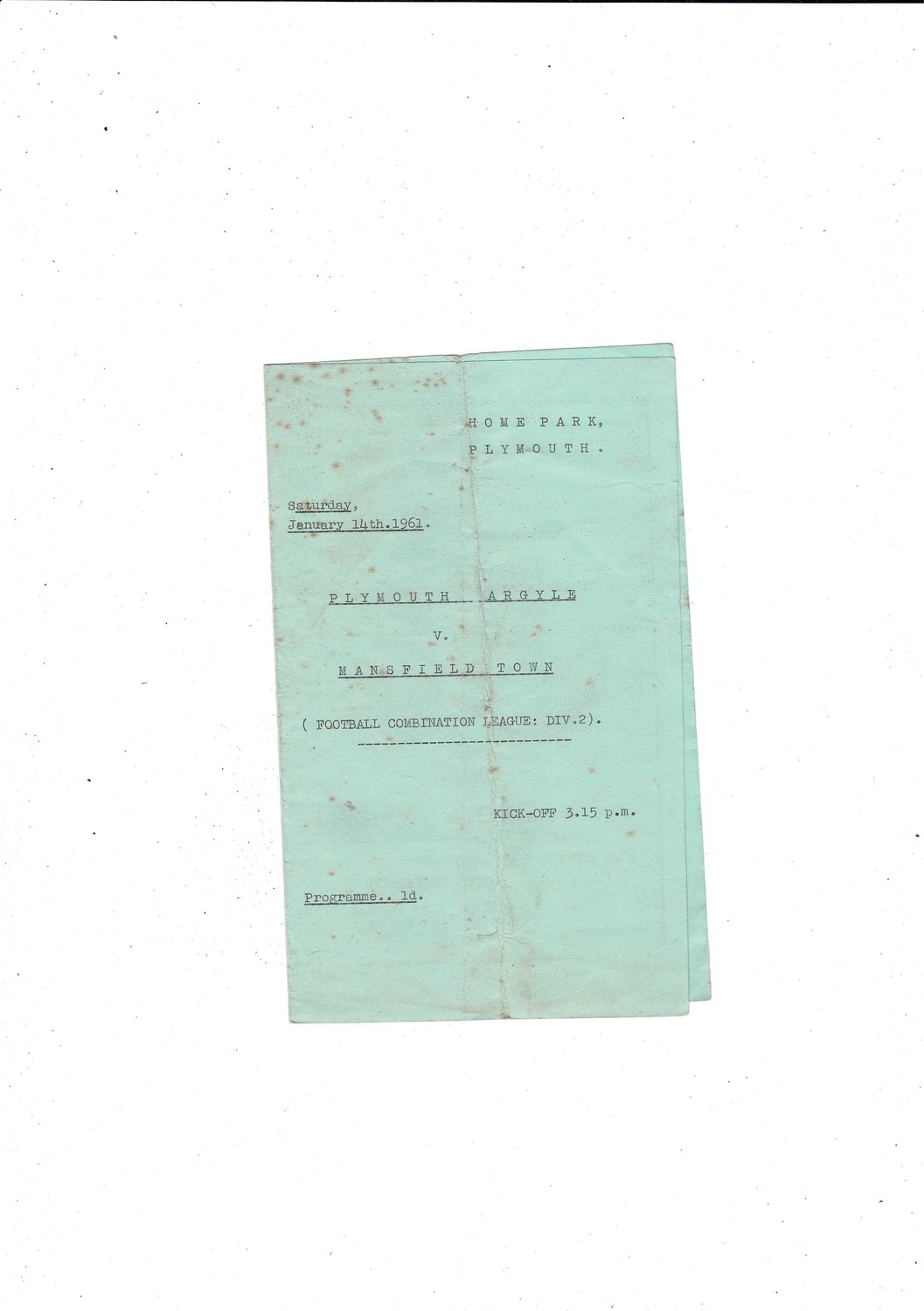Plymouth Argyle v Mansfield Town Football Combination Programme 1960/61