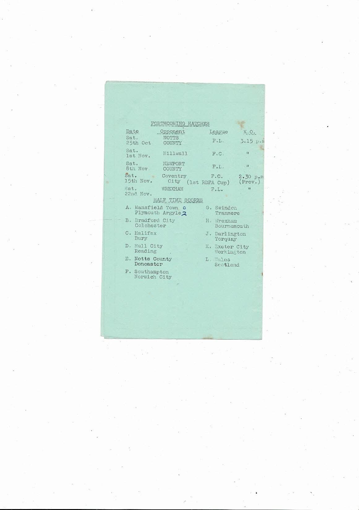This original 4 page Football Programme is creased also has a fold with some staining, score, scorers, one result & team changes noted. Please see scans.