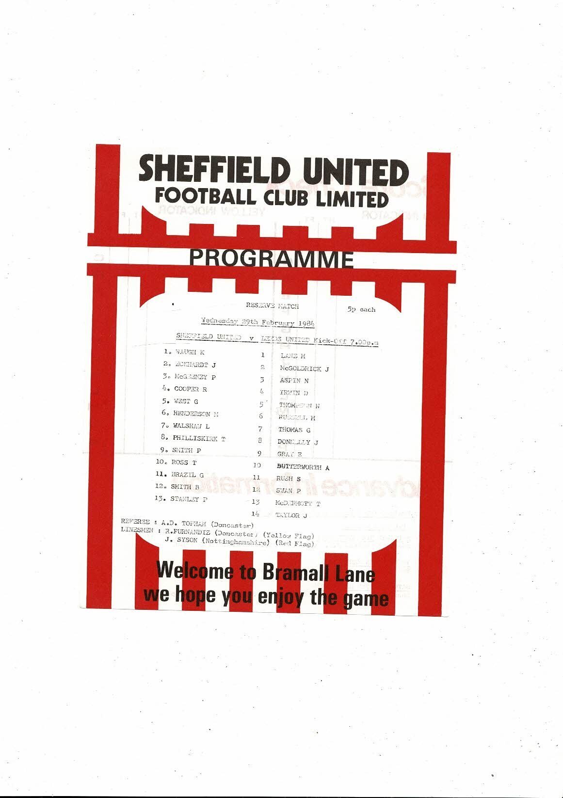 Sheffield United v Leeds United Central League Football Programme 1983/84