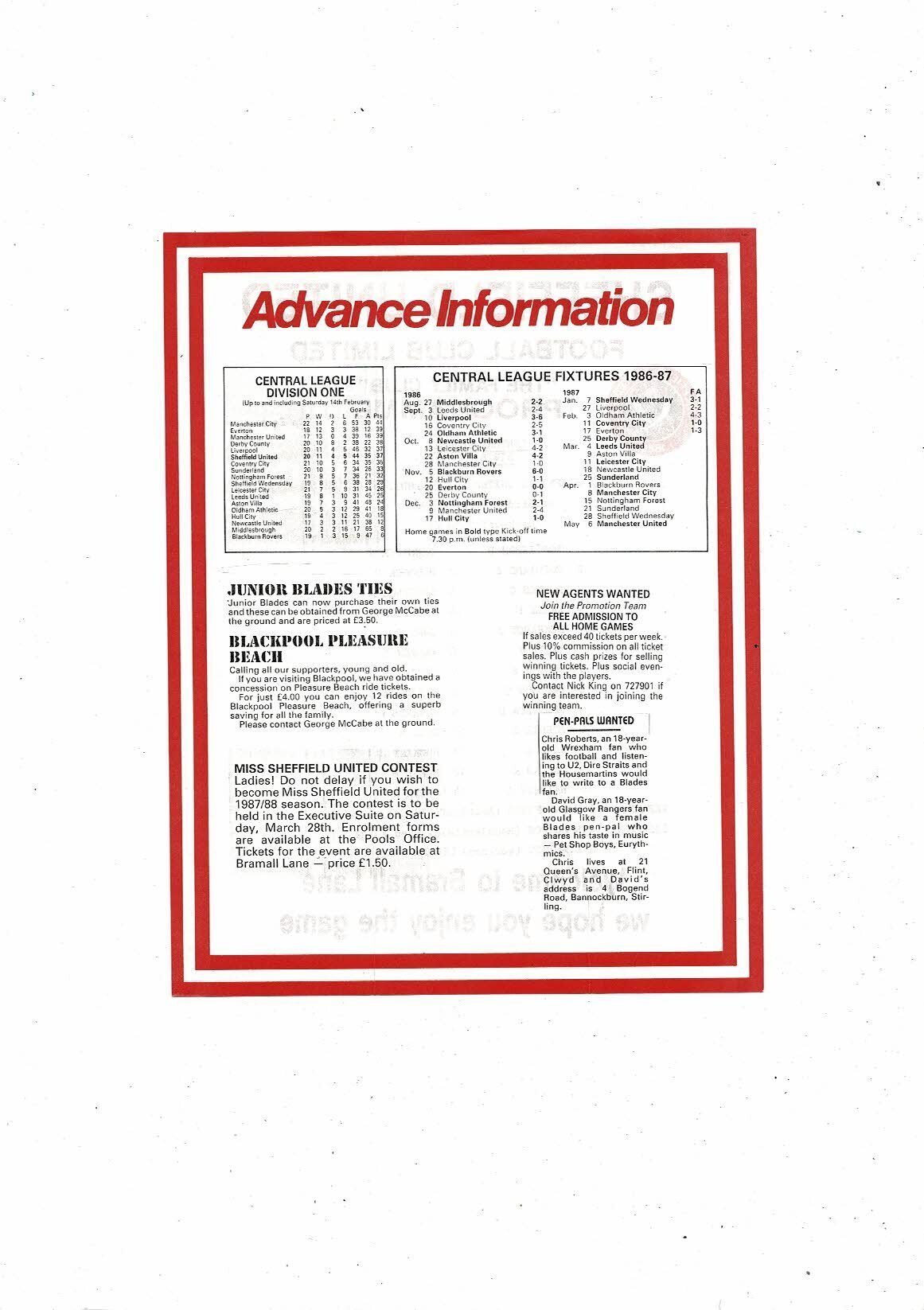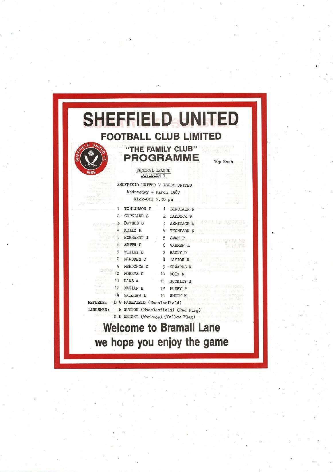 Sheffield United v Leeds United Central League Football Programme 1986/87
