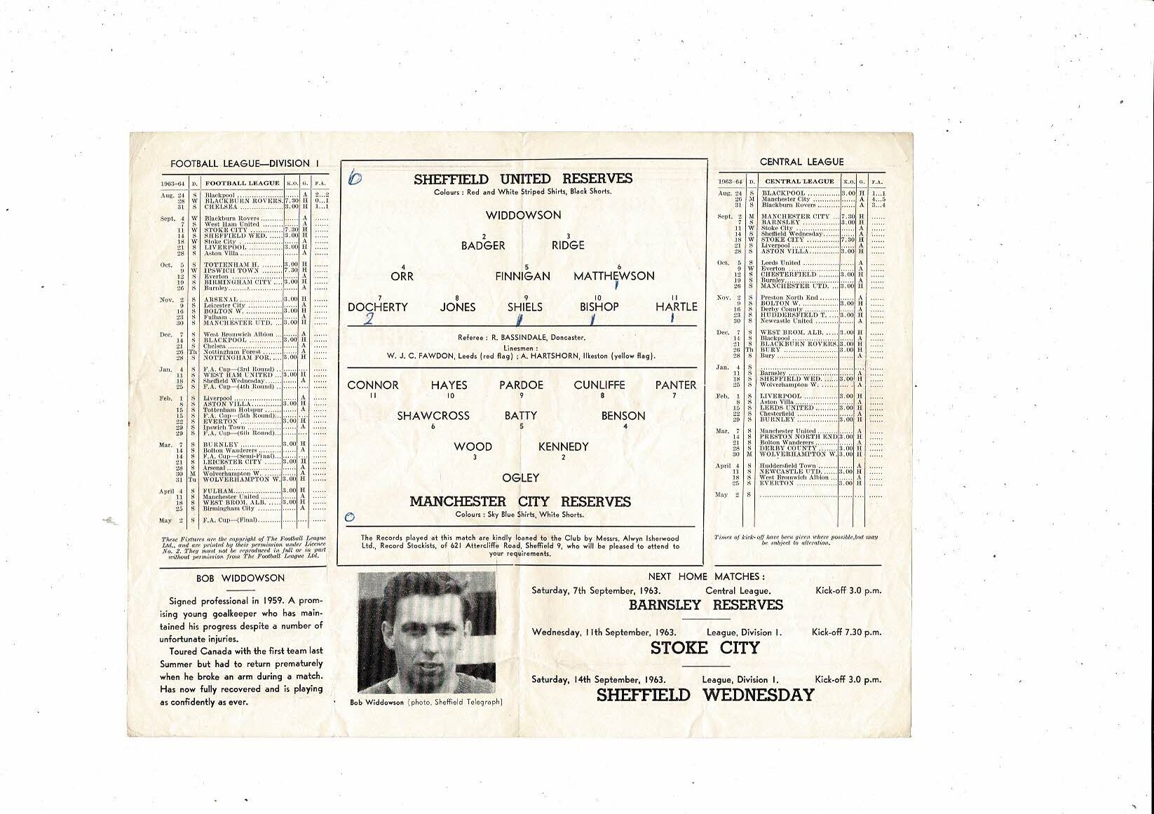 Sheffield United v Manchester City Central League Football Programme 1963/64