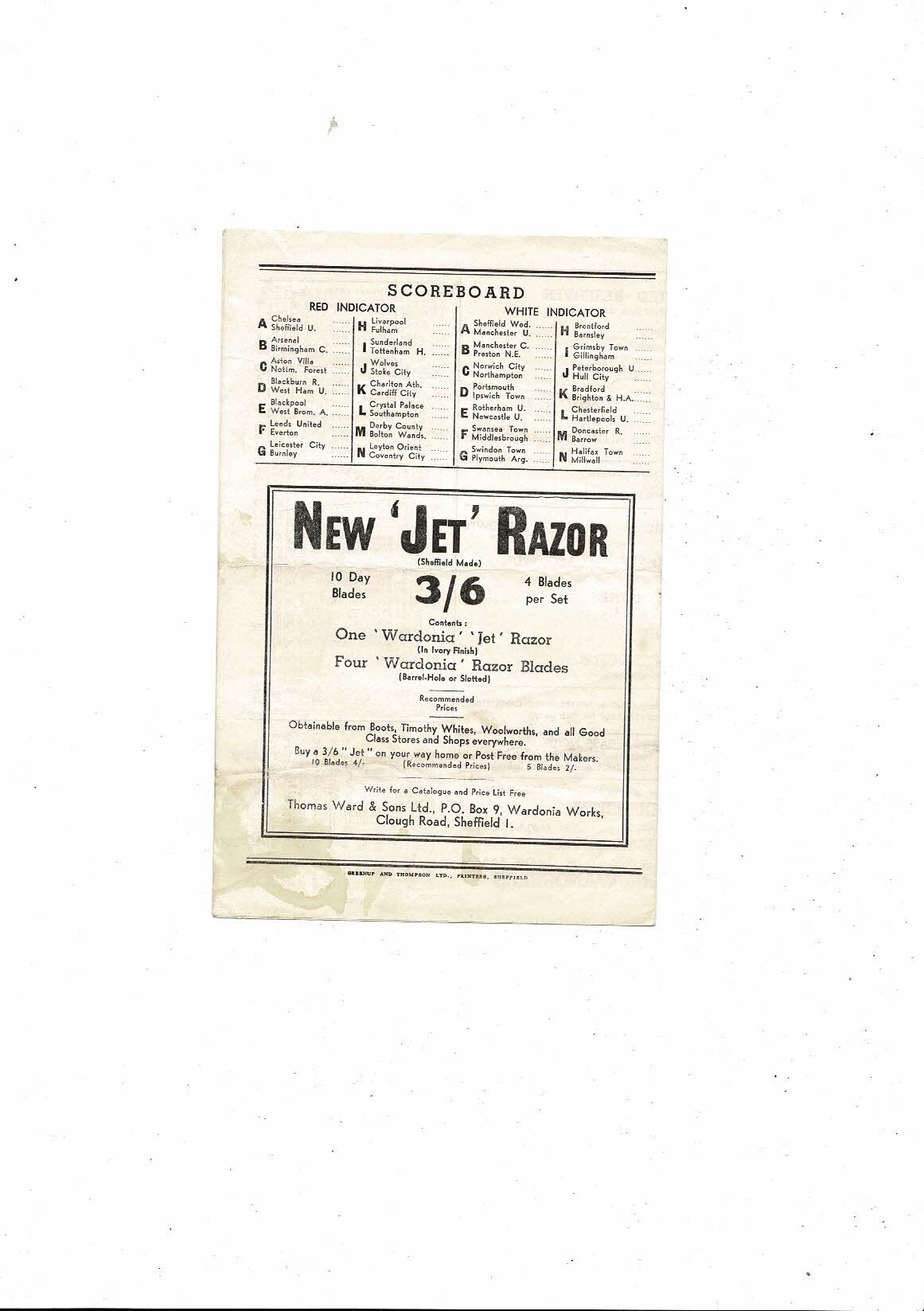 This Original 4 page Football Programme is creased & folded with some staining. No handwriting. Please see scans.