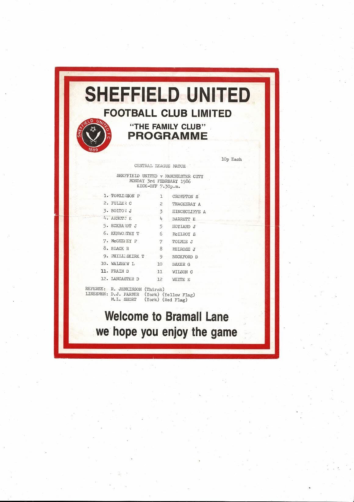 Sheffield United v Manchester City Central League Football Programme 1985/86