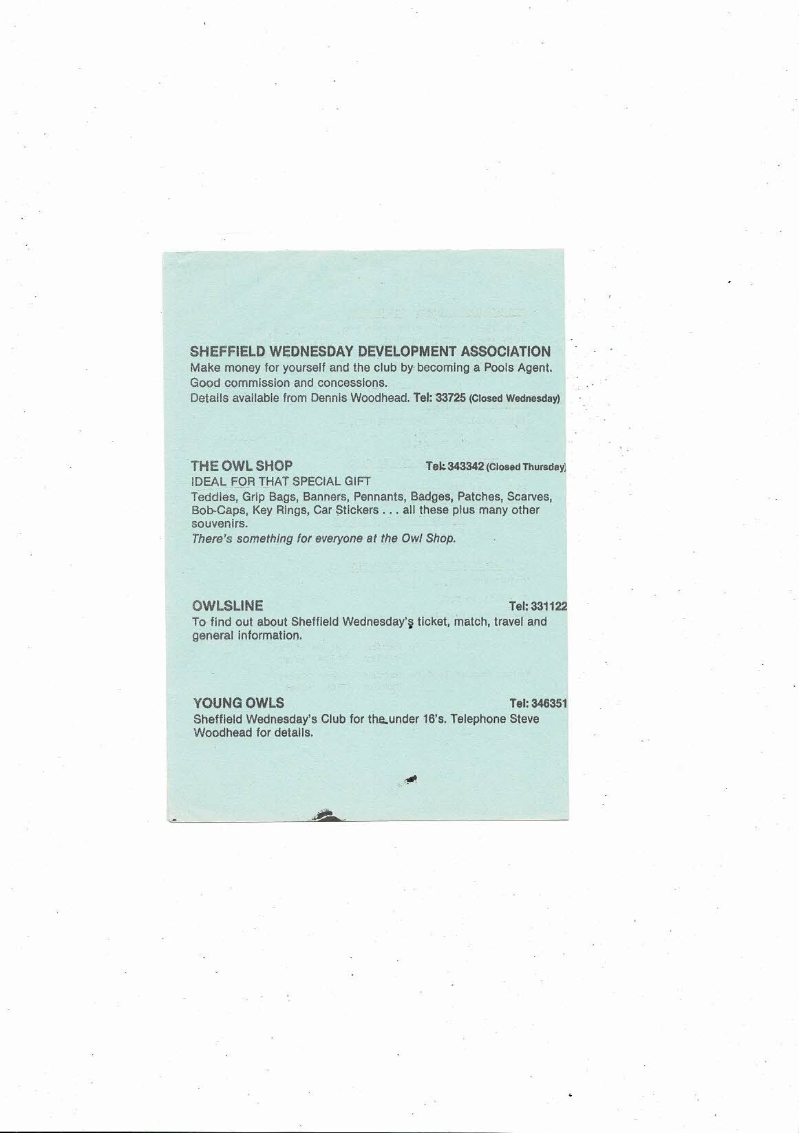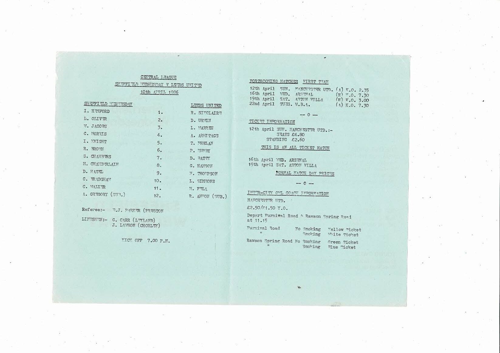 Sheffield Wedensday v Leeds United Central League Football Programme 1985/86