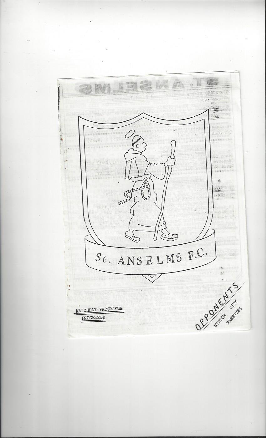 St Anselms v Newton City Reserves Football Programme 1989/90