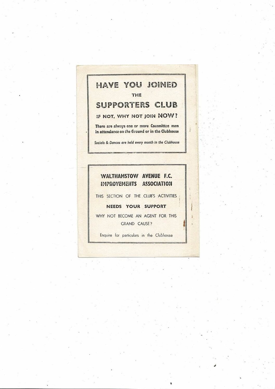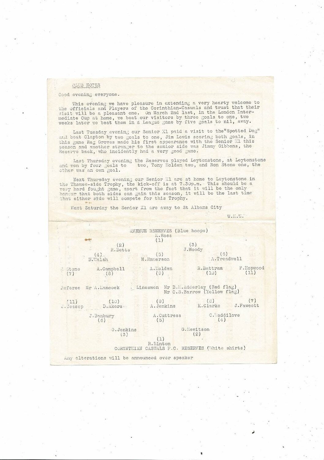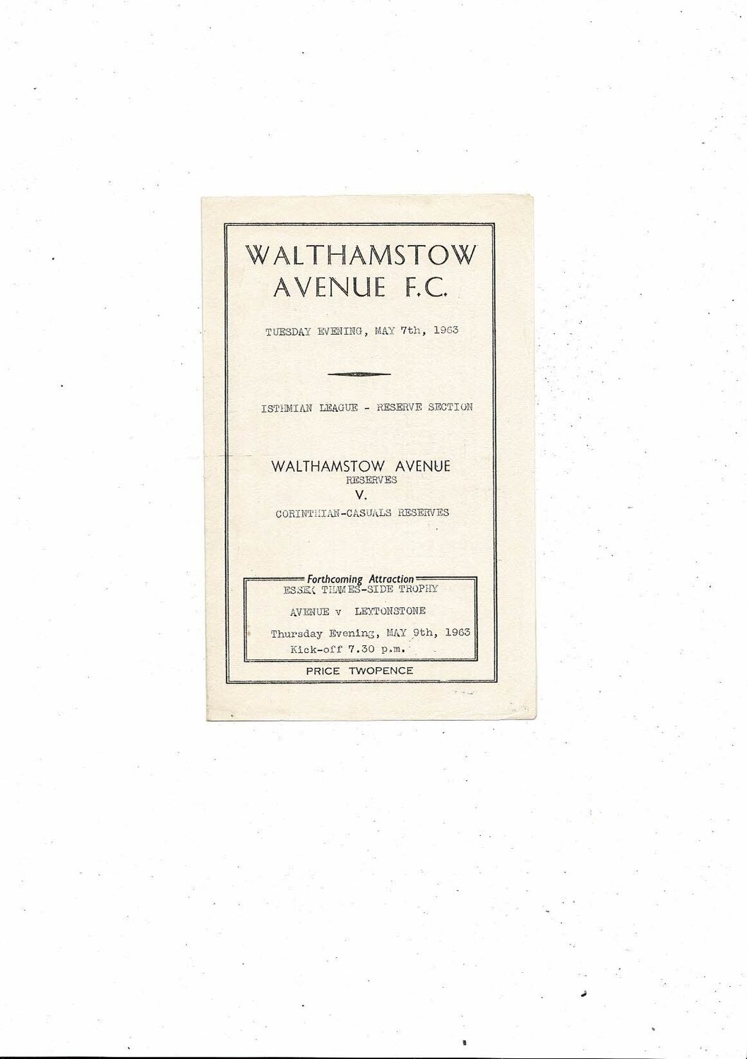 Walthamstow Avenue v Corinthian Casuals Reserves Football Programme 1962/63