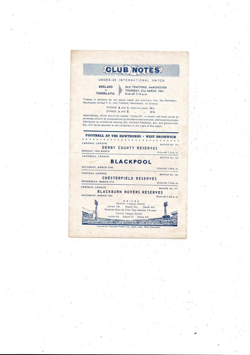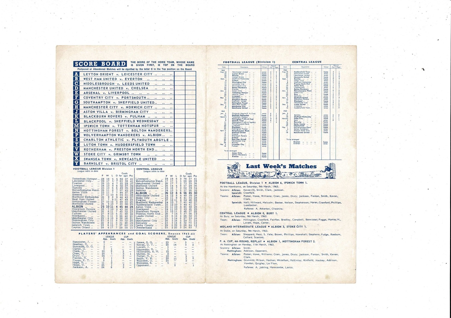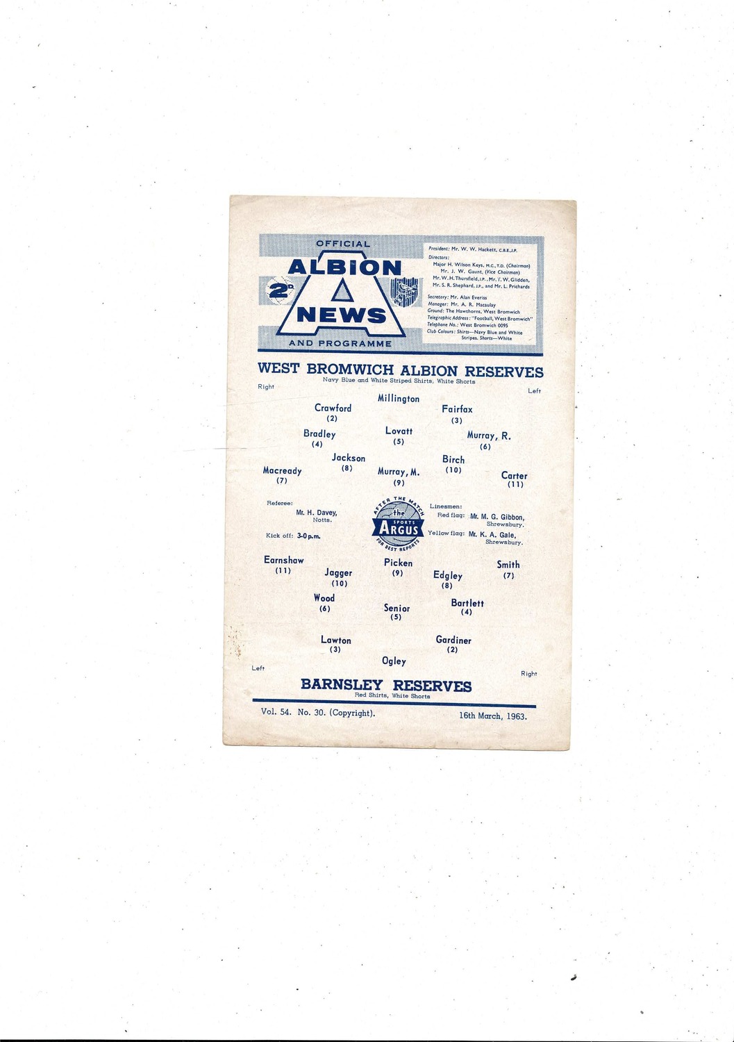 West Bromwich Albion v Barnsley Central League Football Programme 1962/63
