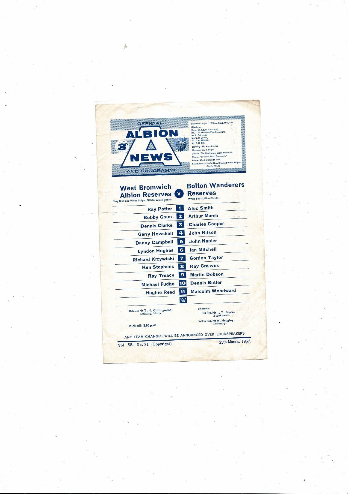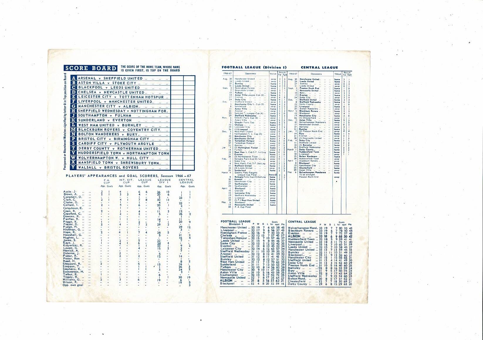 West Bromwich Albion v Bolton Wanderers Central League Football Programme 1966/67