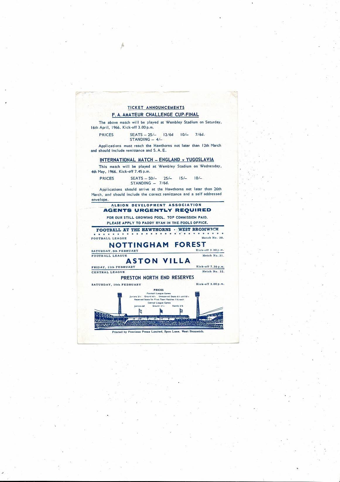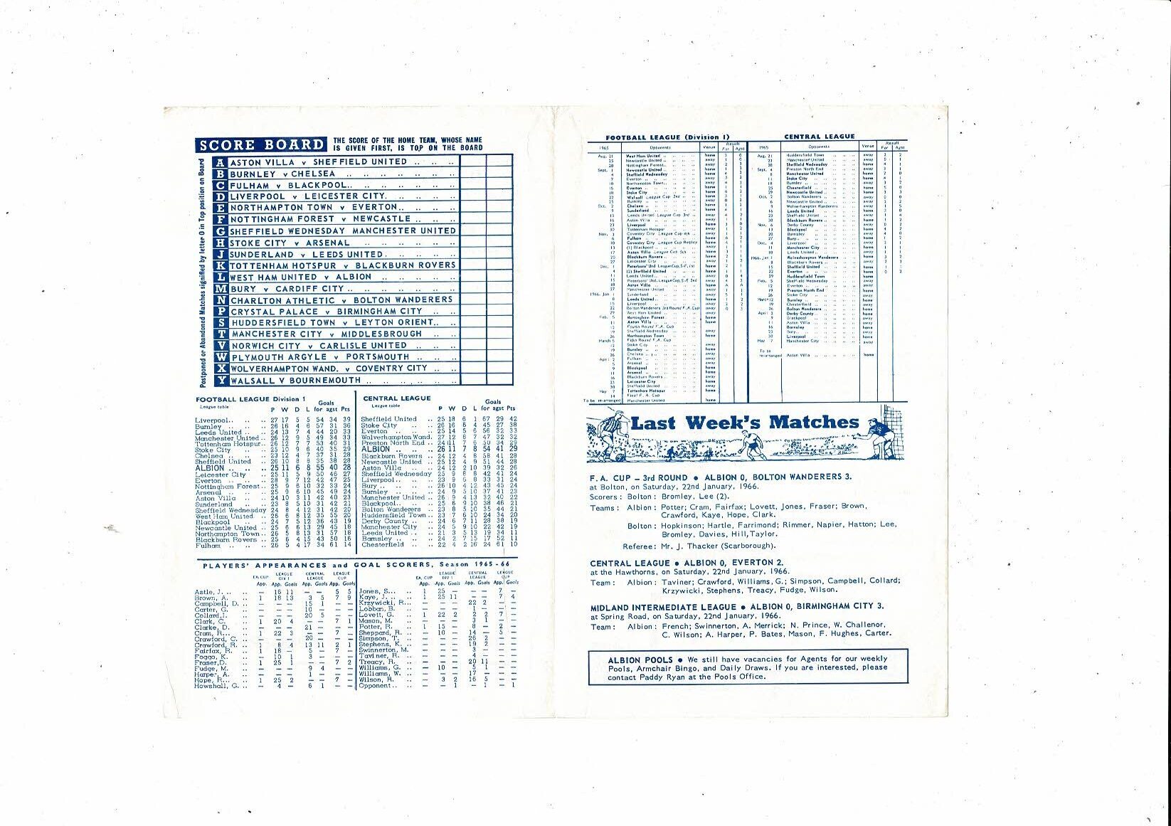 West Bromwich Albion v Huddersfield Central League Football Programme 1965/66