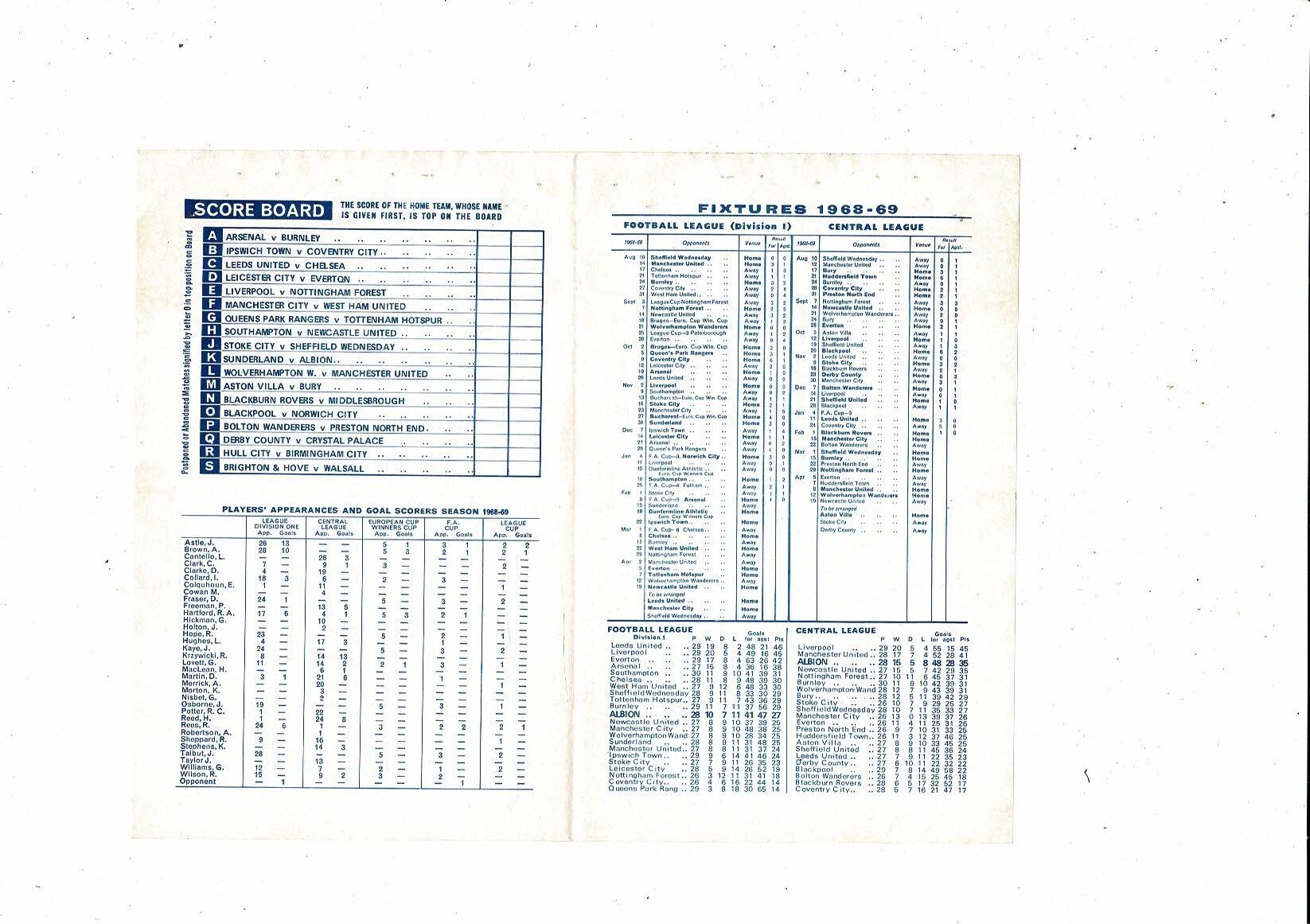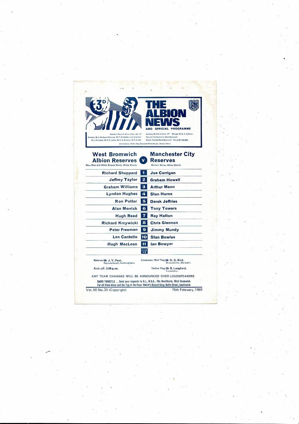 West Bromwich Albion v Manchester City Central League Football Programme 1968/69