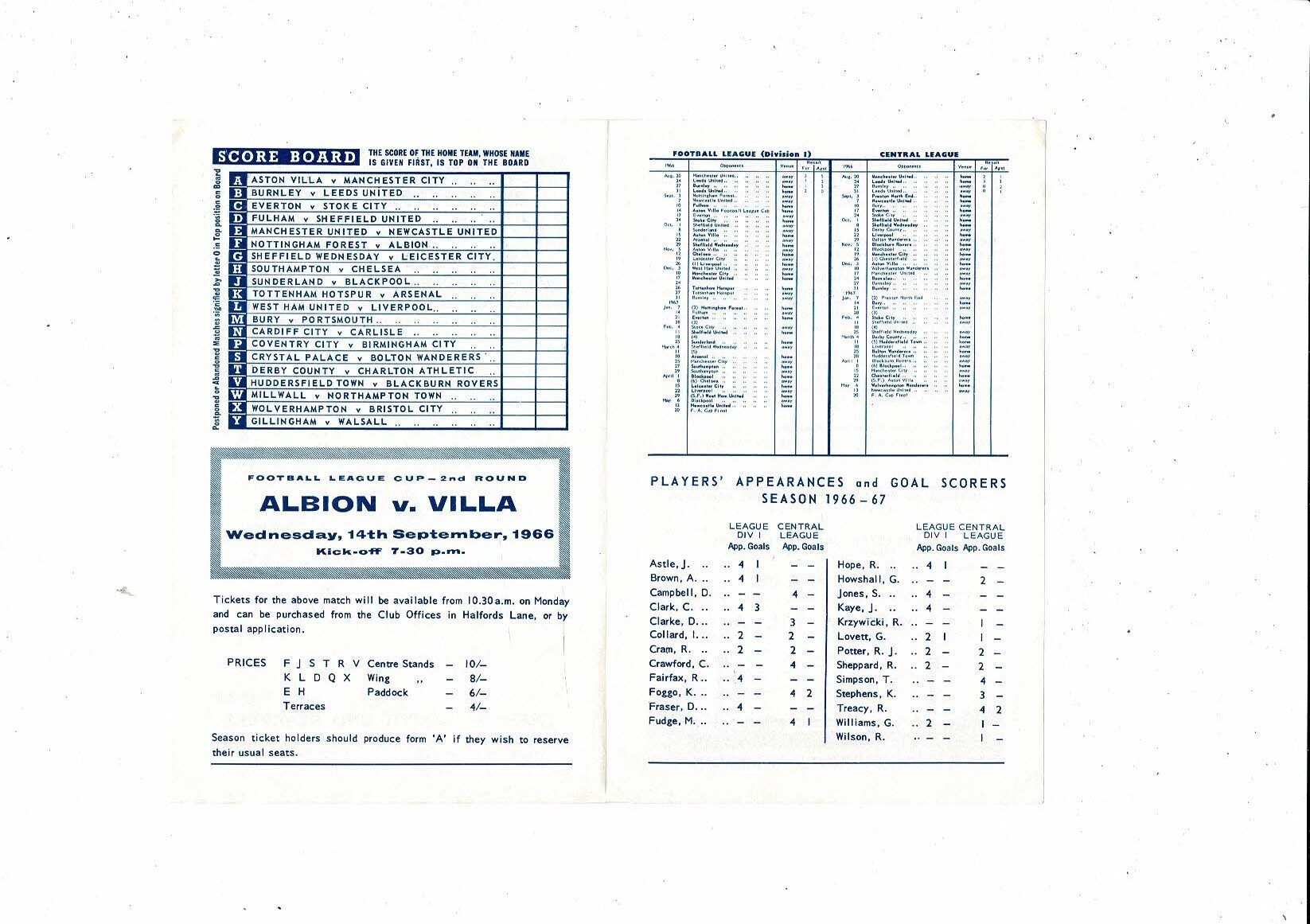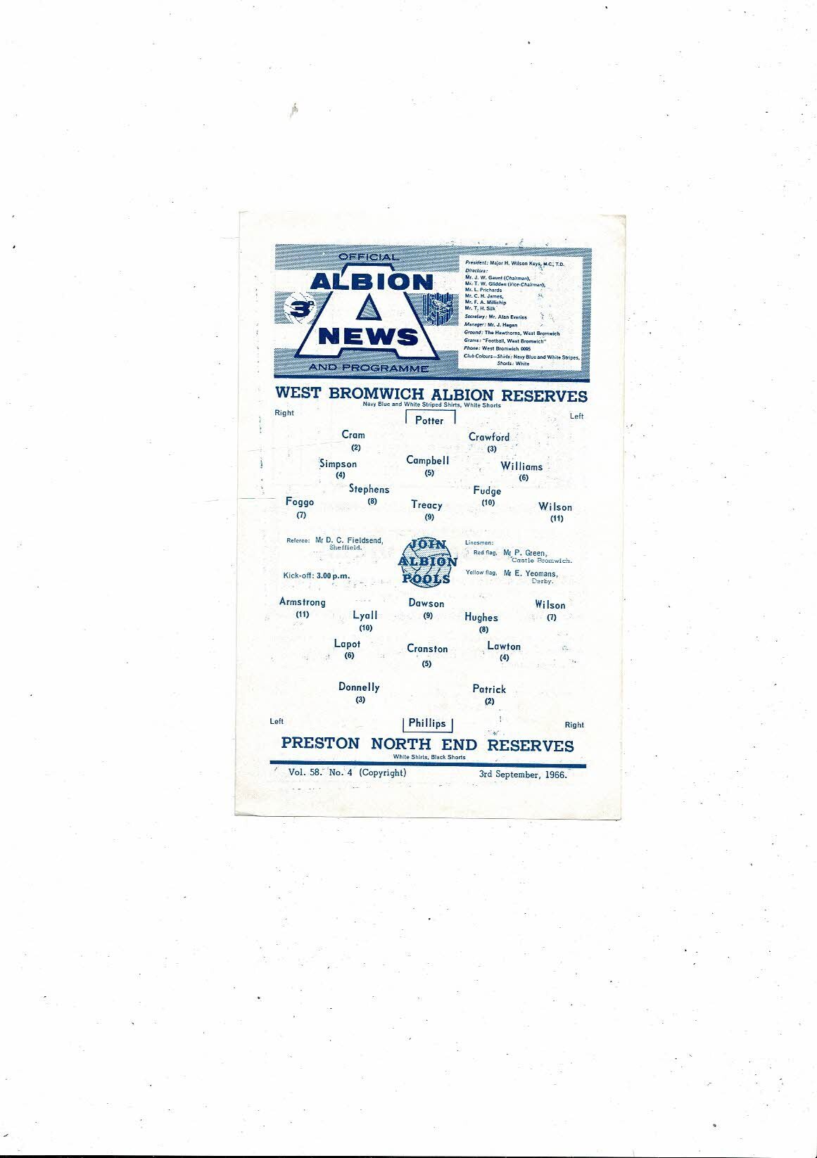 West Bromwich Albion v Preston Central League Football Programme 1966/67