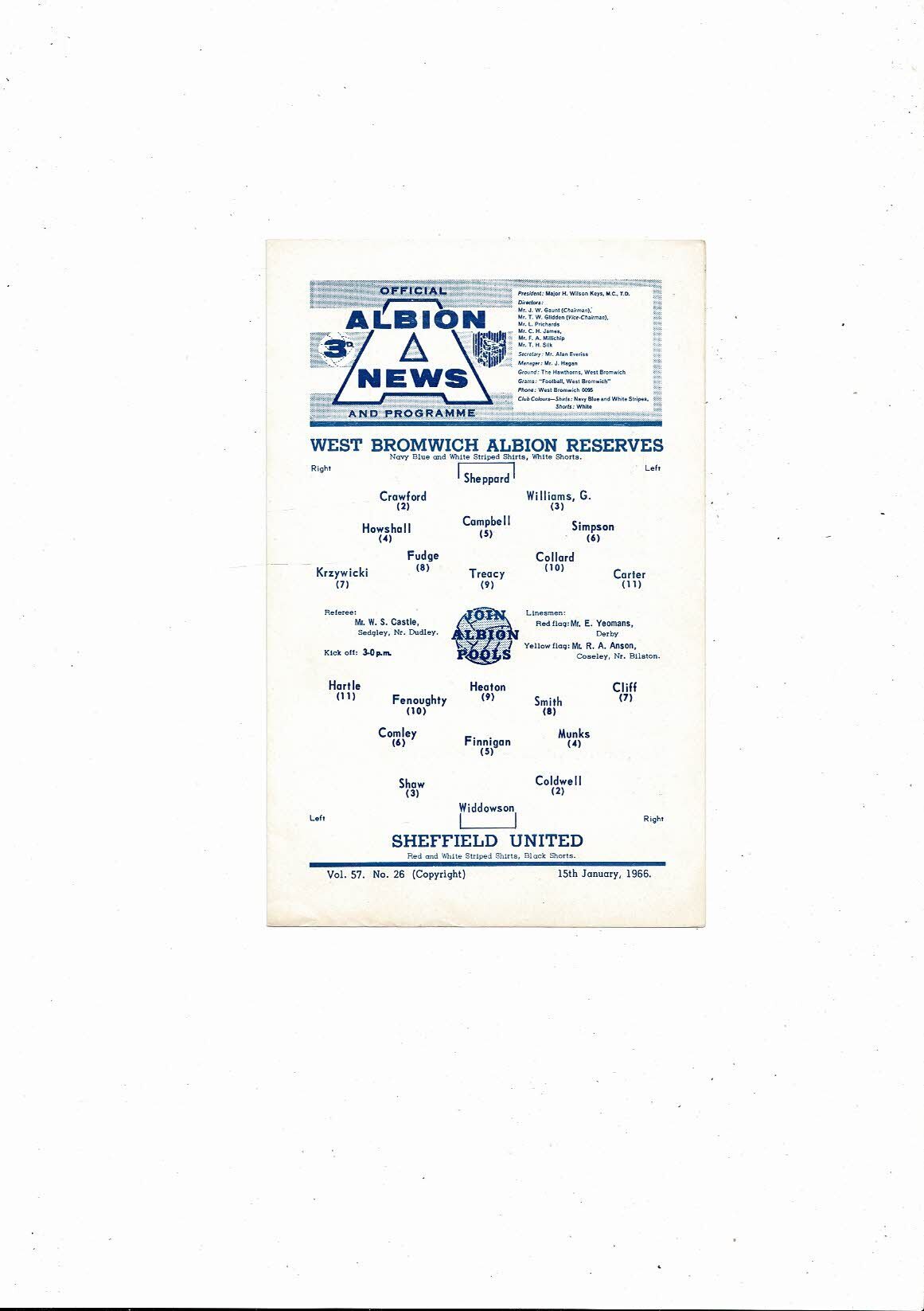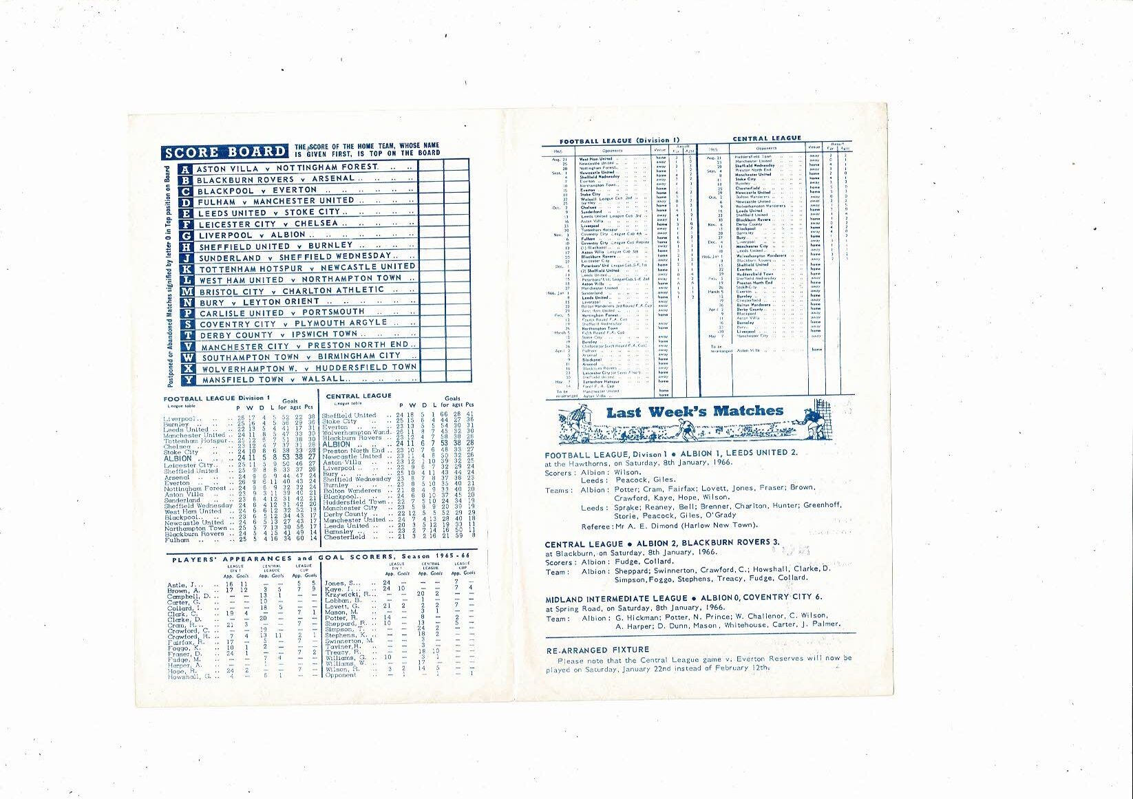 West Bromwich Albion v Sheffield United Central League Football Programme 1965/66