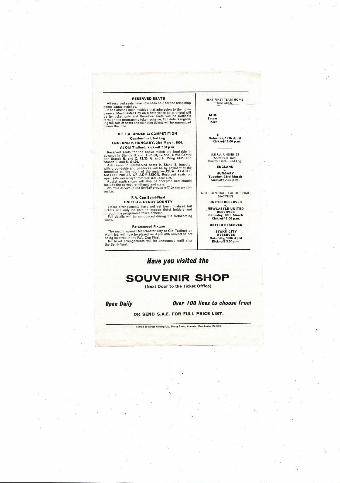 Manchester United v West Bromwich Albion FA Youth Cup Replay Football Programme 1975/76