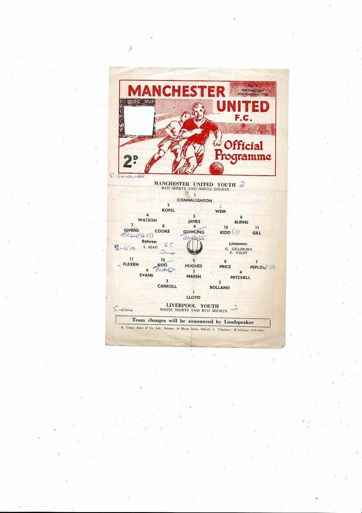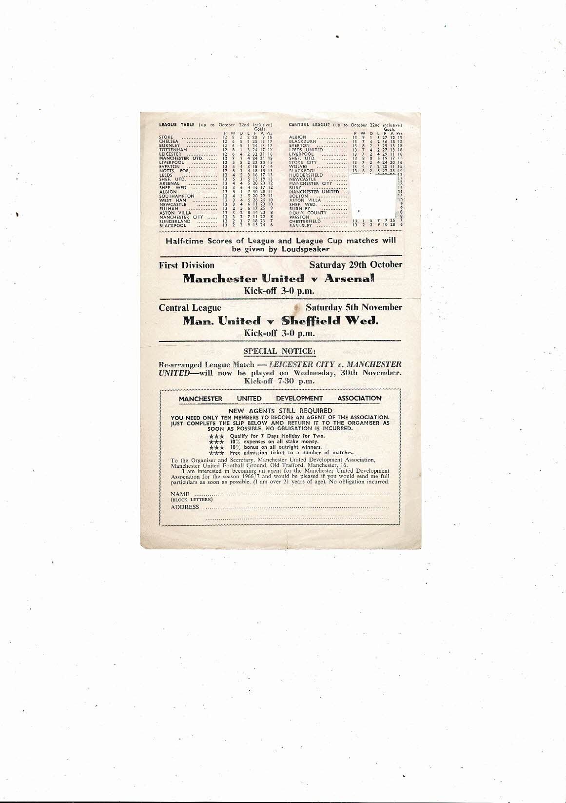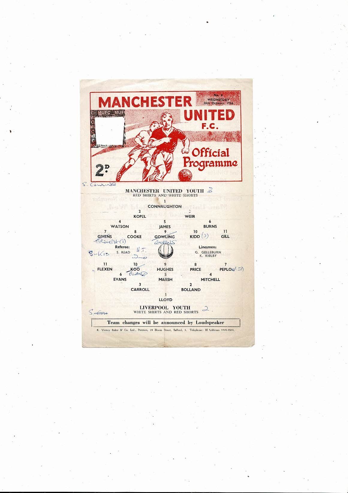 Manchester United Youth v Liverpool Youth Football Programme 1966/67