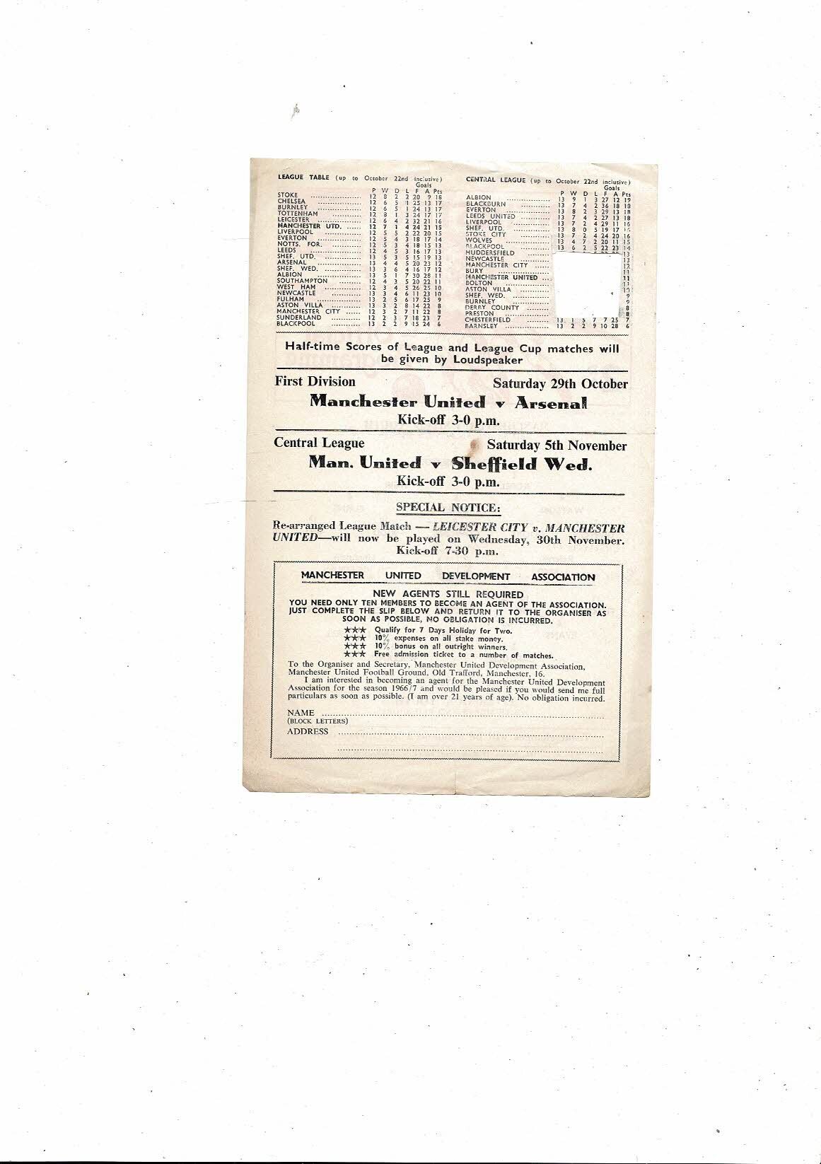 This original Single Sheet Football Programme is creased & folded with some staining, three small tears & a couple of tiny nic's, token neatly removed, score, scorers & team changes noted. Please see scans.