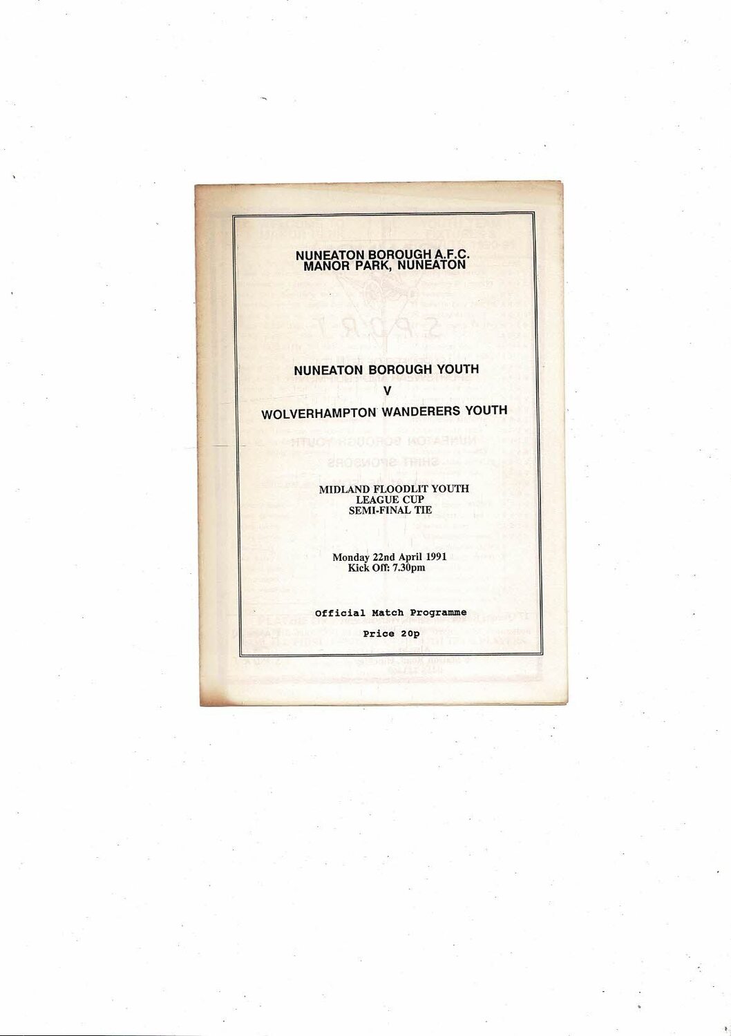 Nuneaton Borough v Wolves Youth League Cup Semi Final Football Programme 1990/91