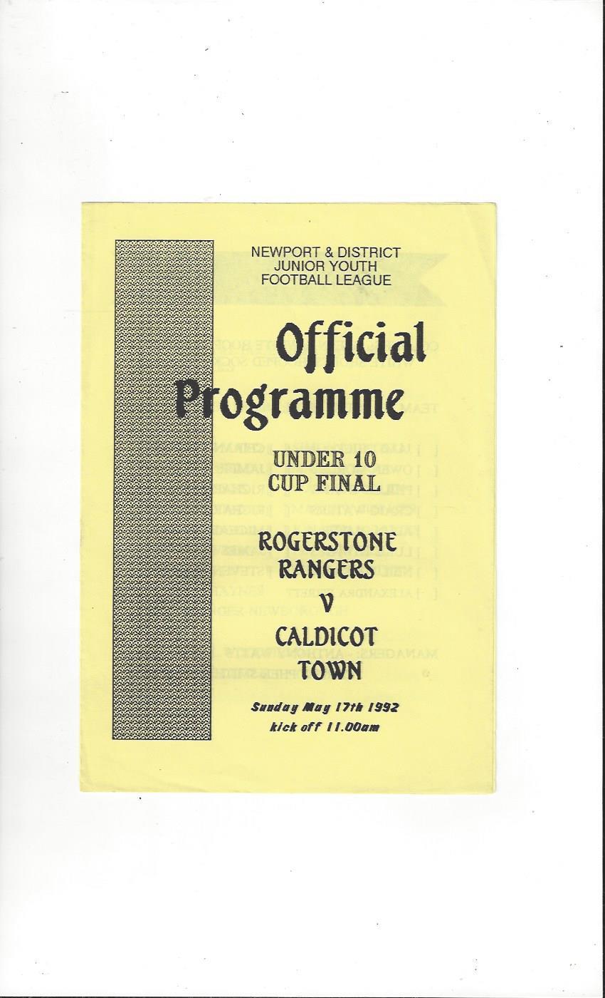Rogerstone Rangers v Caldicot Town Newport U10 Final Football Programme 1991/92