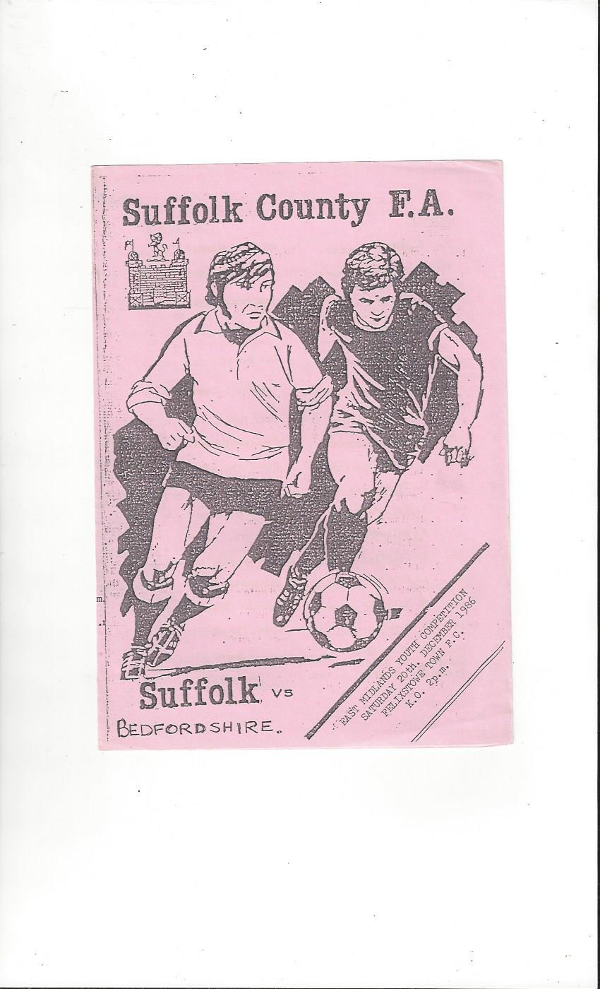 Suffolk v Bedfordshire East Mids Youth Cup Football Programme 1986/87