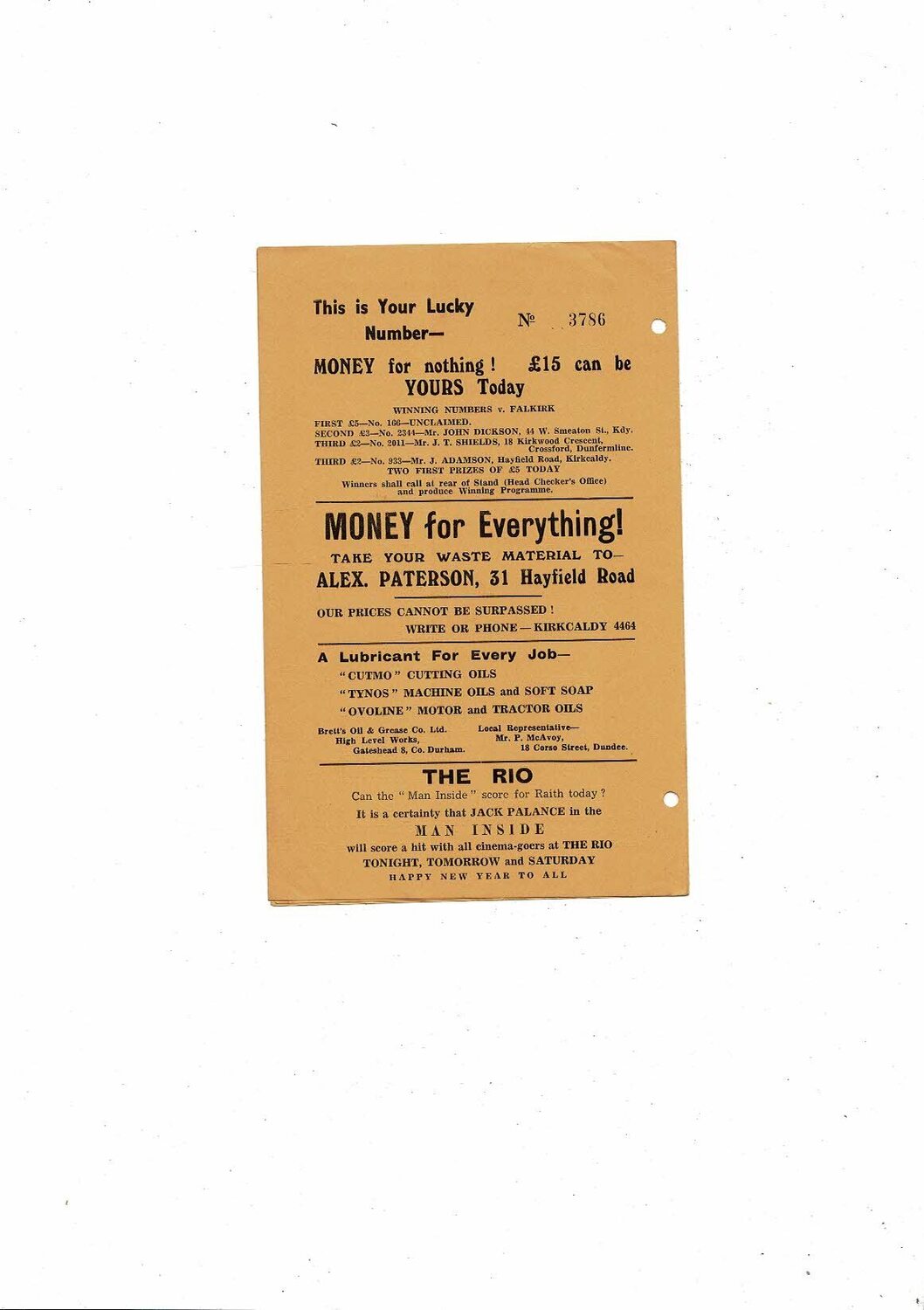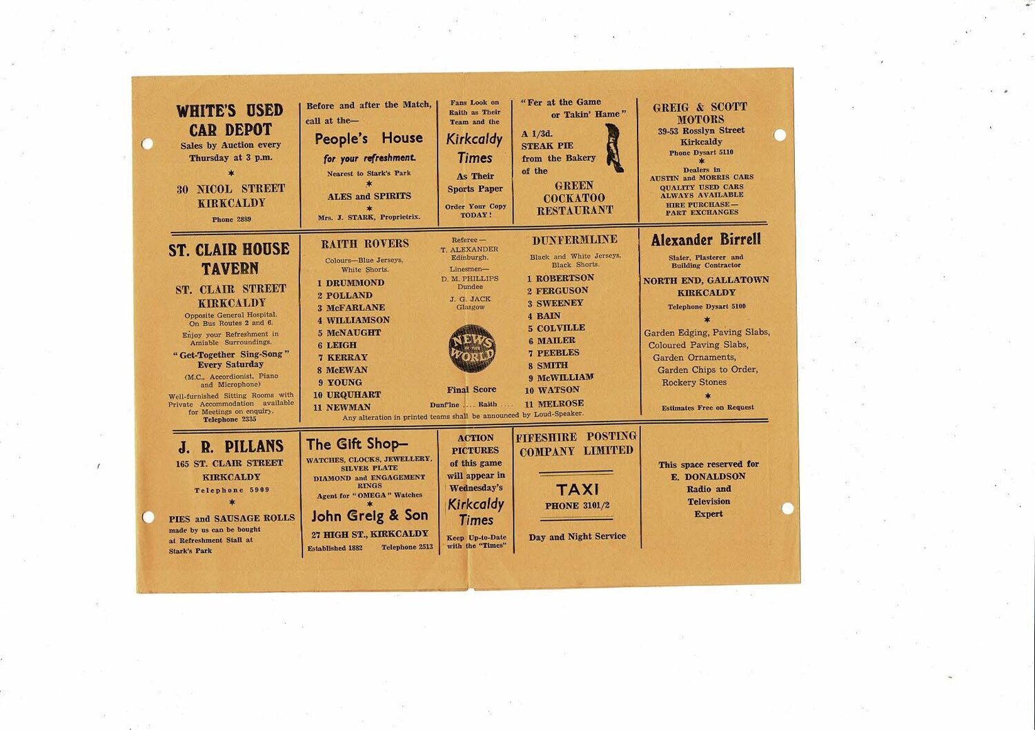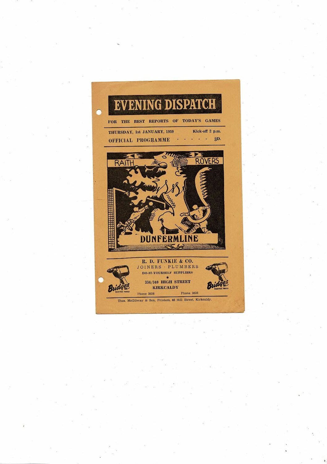1958/59 Raith Rovers v Dunfermline Football Programme
