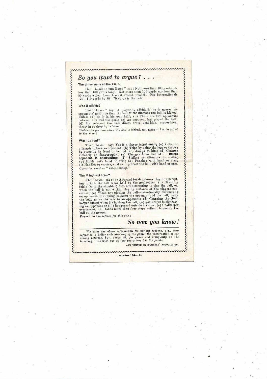 1960/61 Ayr United v Dunfermline Athletic Football Programme