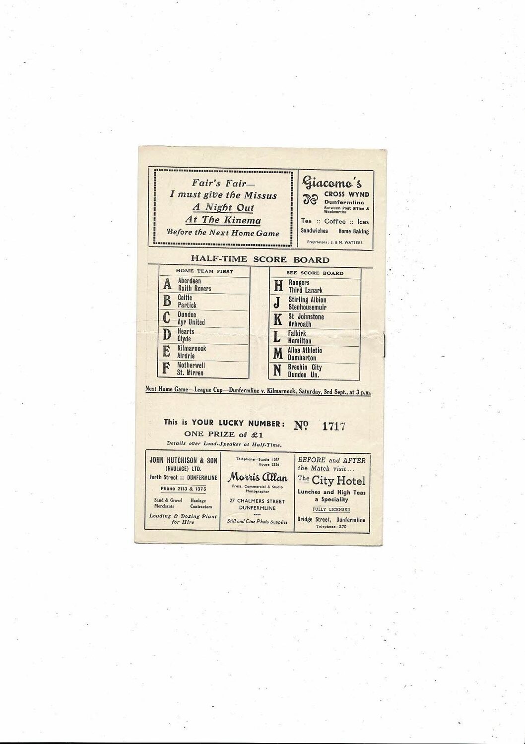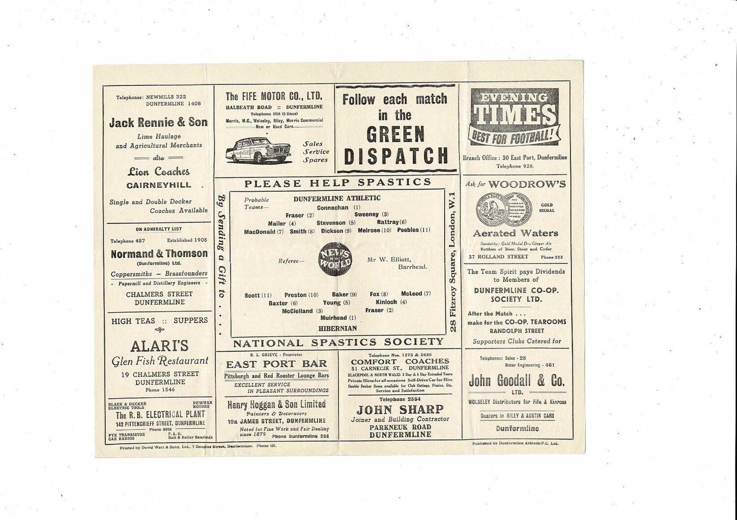 1960/61 Dunfermline Athletic v Hibernian Football Programme