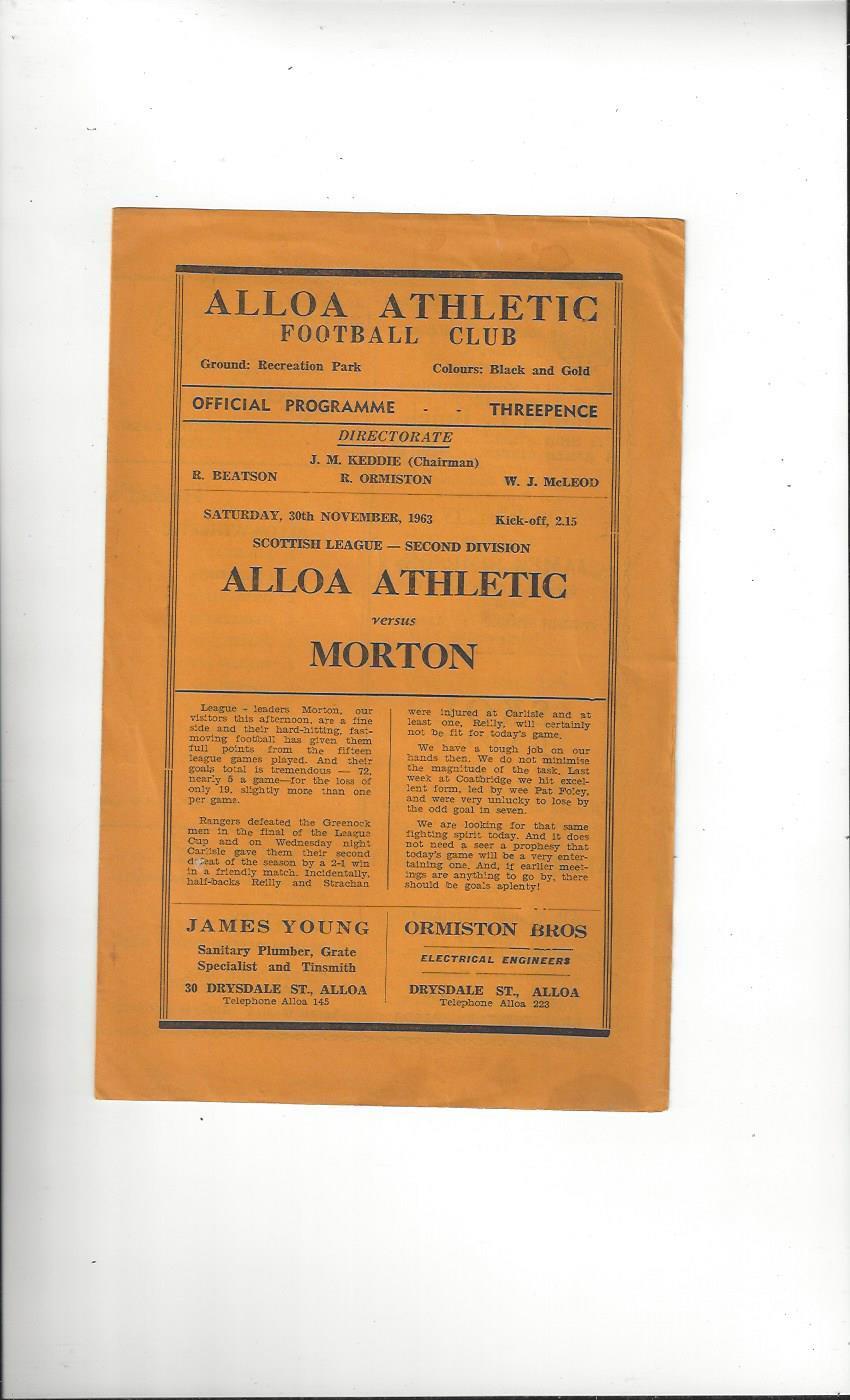 1963/64 Alloa Athletic v Morton Football Programme