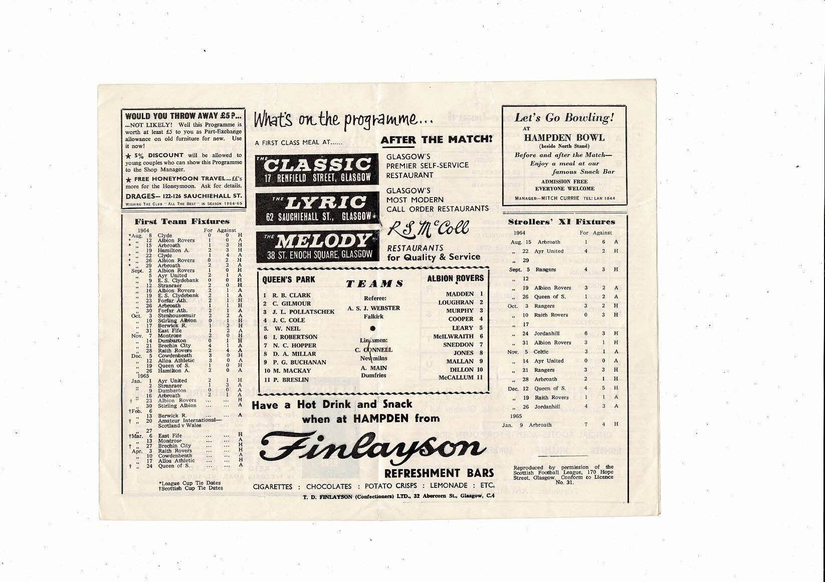 1964/65 Queens Park v Albion Rovers Scottish Cup Football Programme