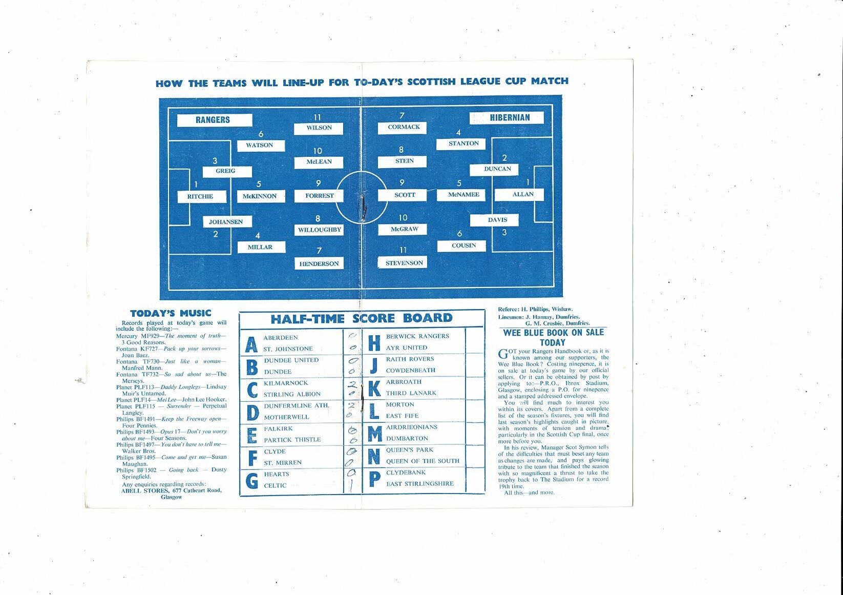 1966/67 Rangers v Hibernian Scottish League Cup Football Programme