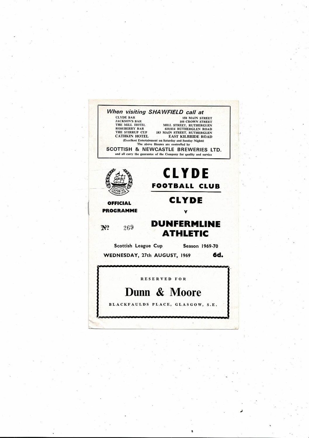 1969/70 Clyde v Dunfermline Athletic Scottish League Cup Football Programme