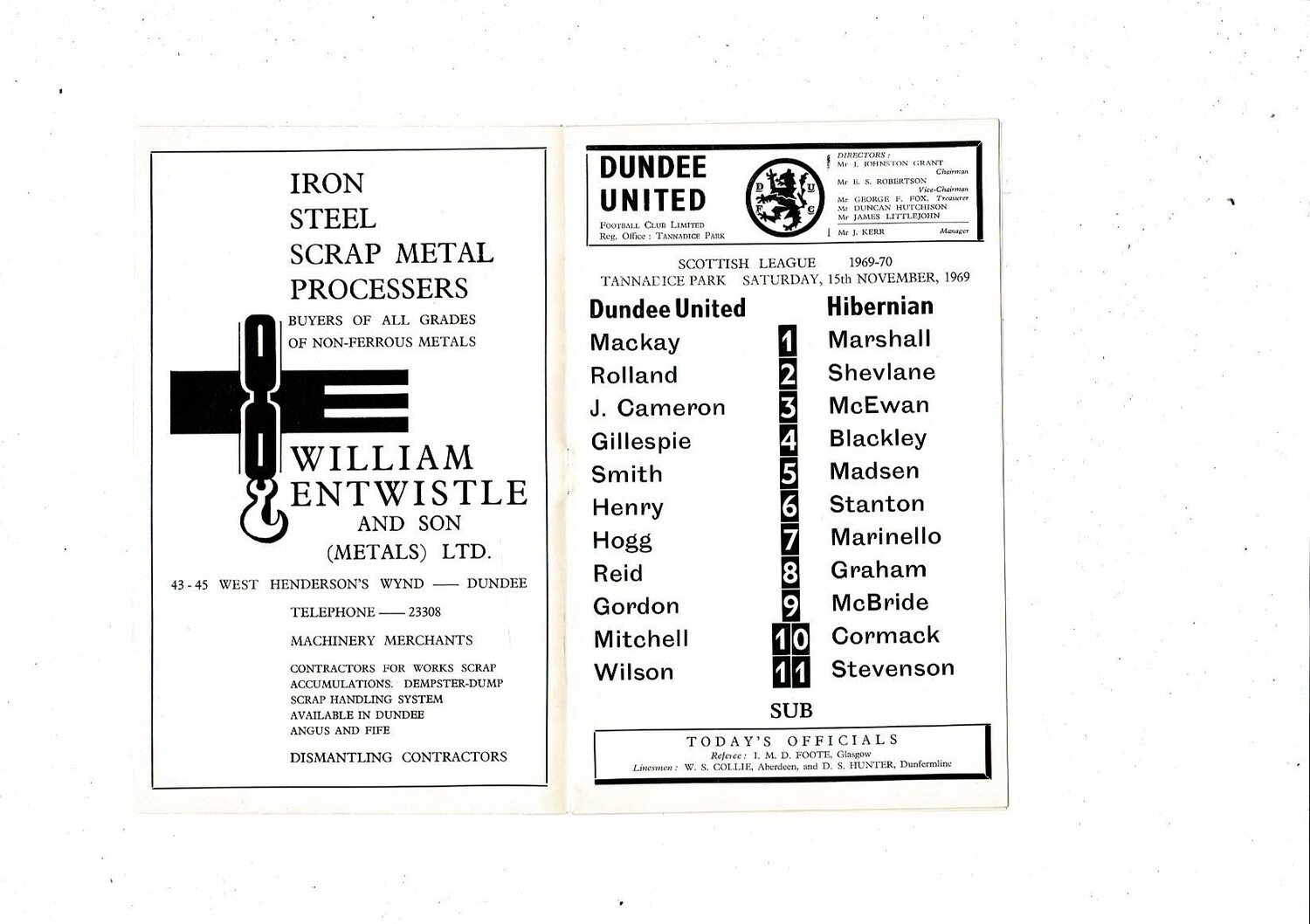1969/70 Dundee United v Hibernian Football Programme