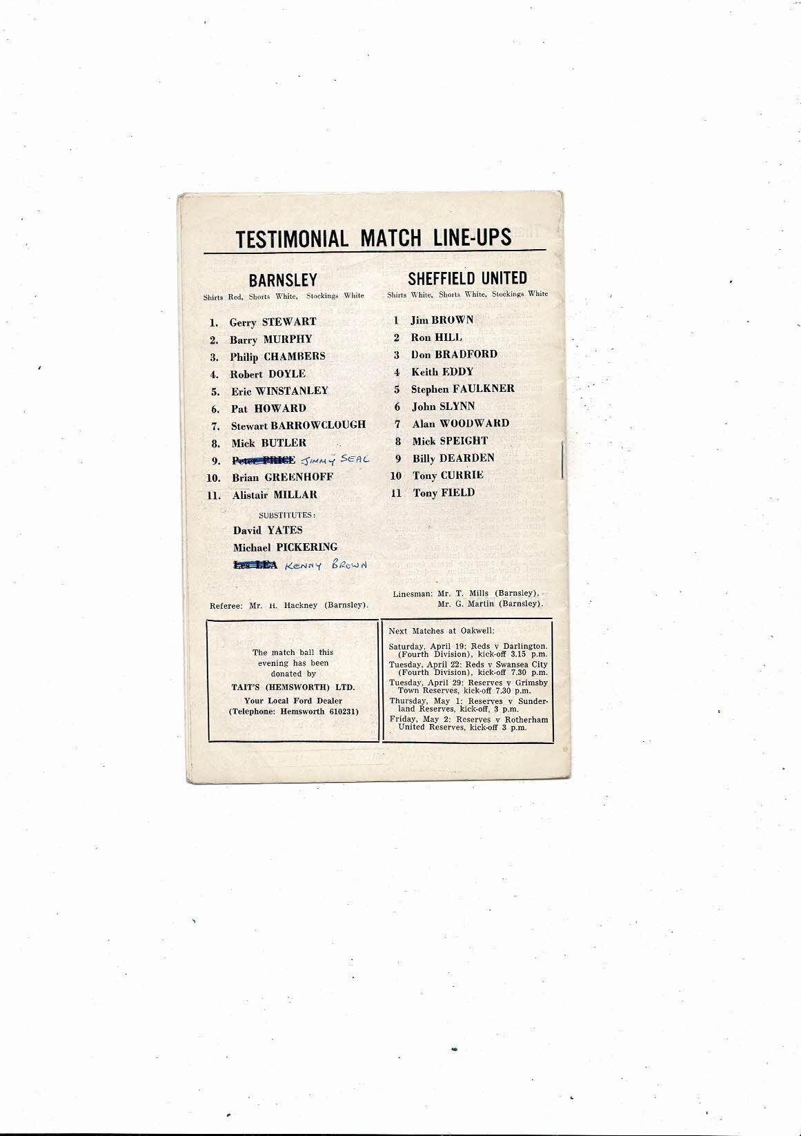Barnsley v Sheffield United Barry Murphy Testimonial Programme +Brochure 1974/75