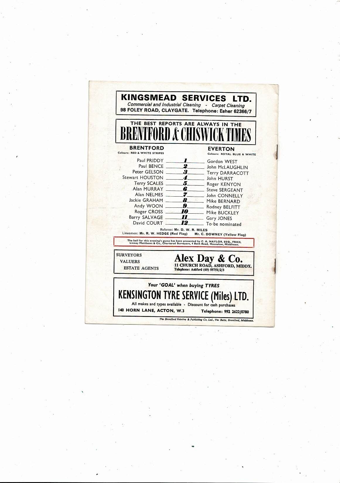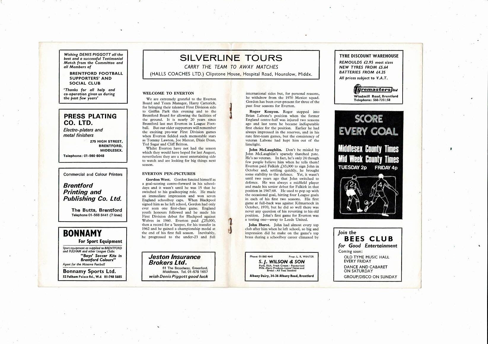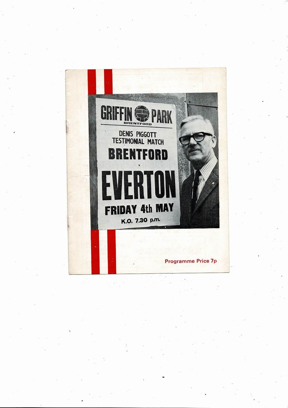 Brentford v Everton Denis Piggott Testimonial Football Programme 1972/73