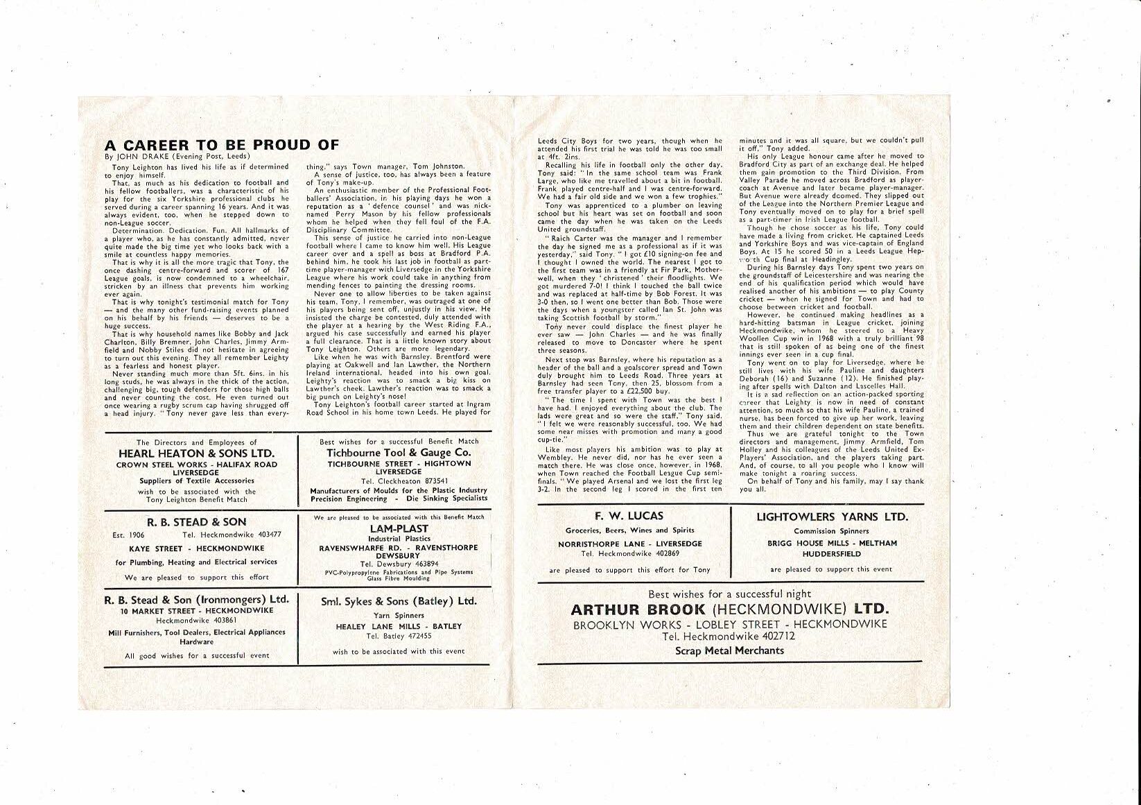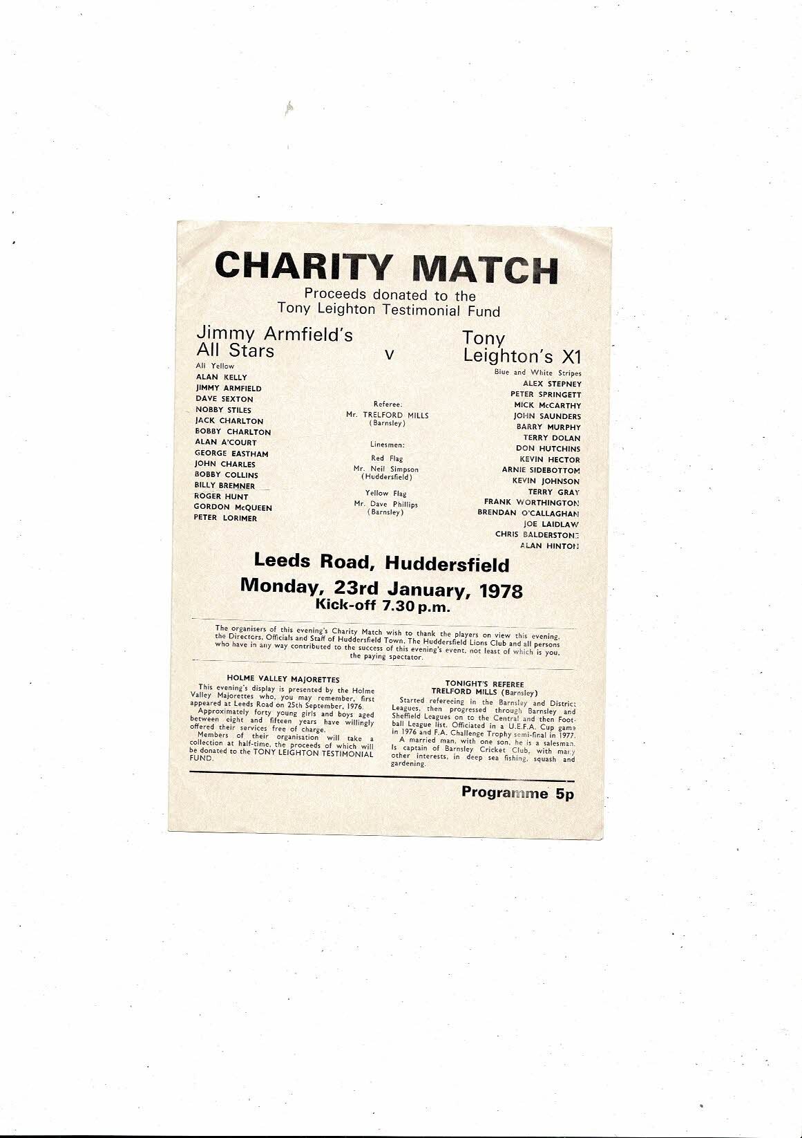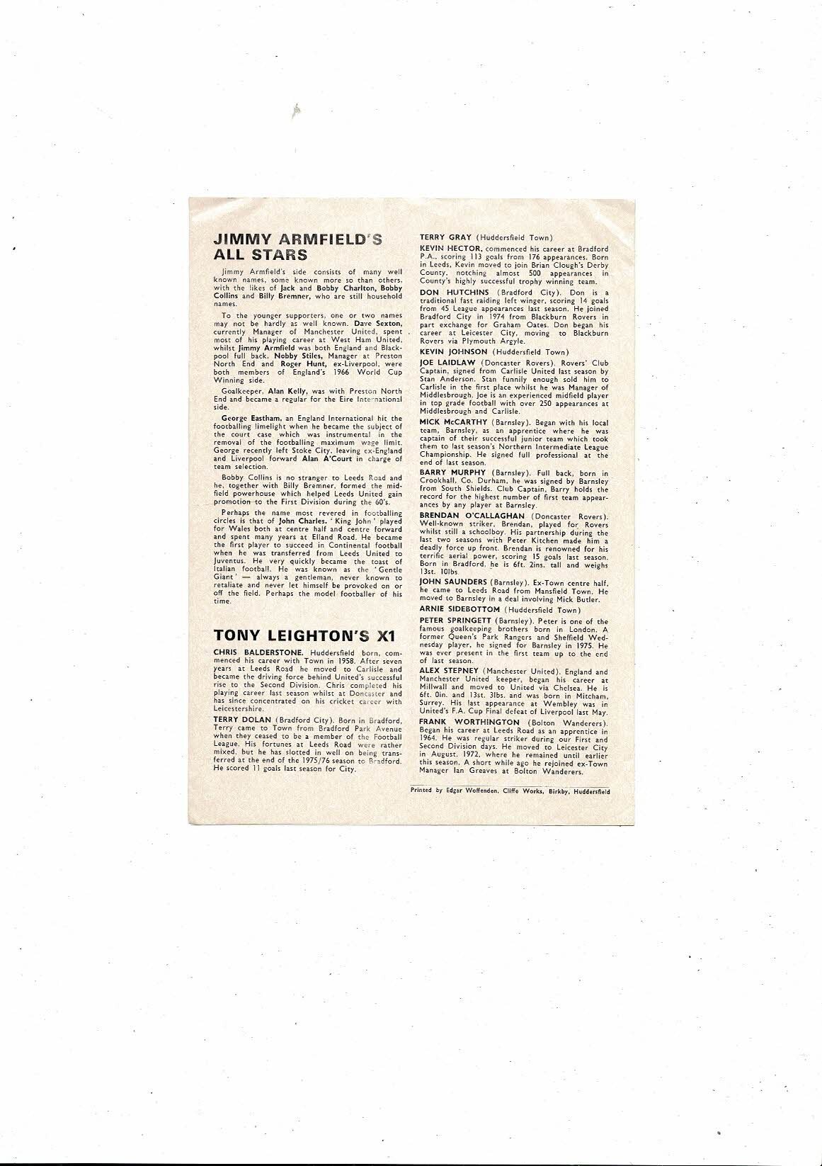 Jimmy Armfields All Stars v Tony Leightons X1 Testimonial Programme 1977/78
