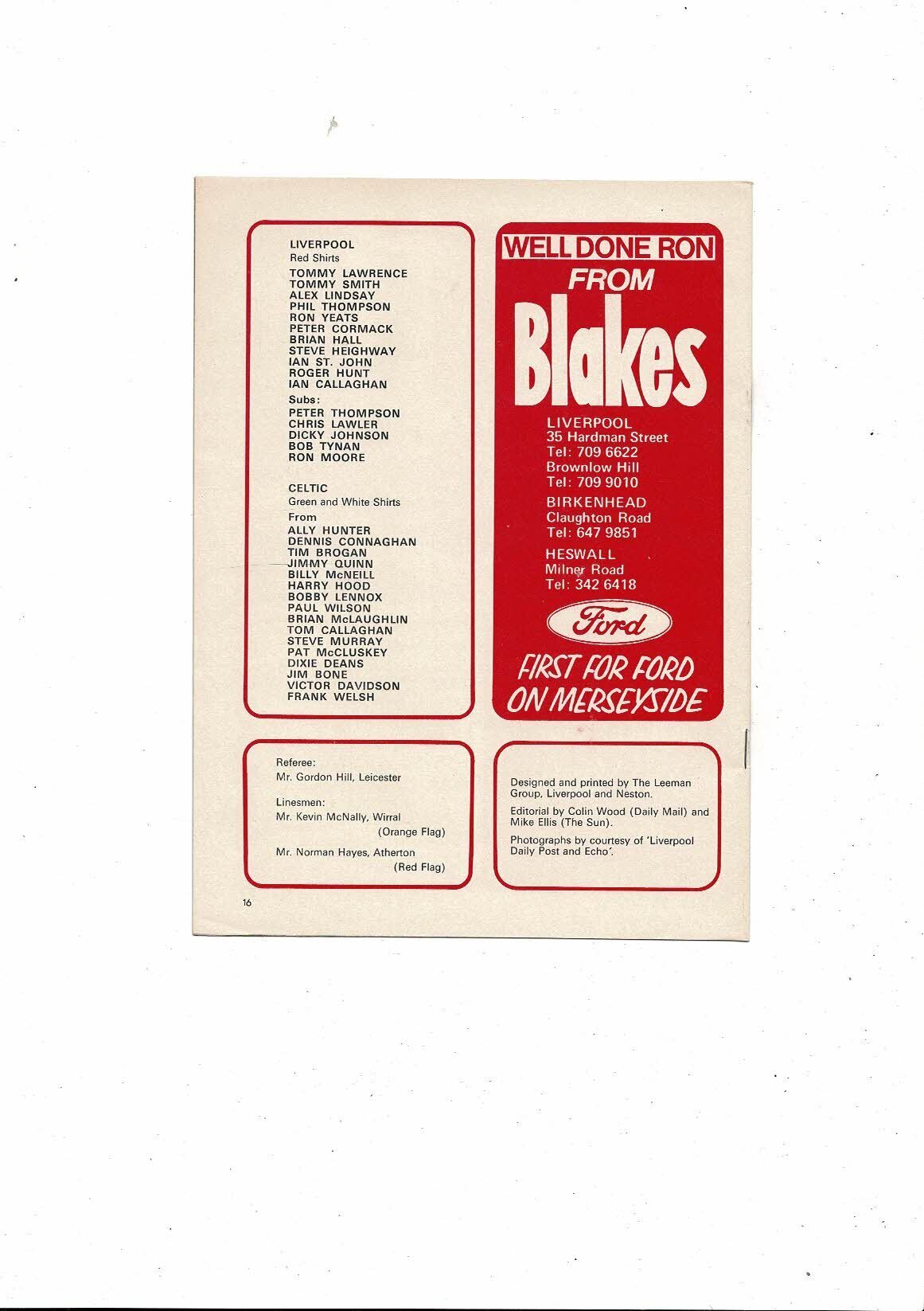 Liverpool v Celtic Ron Yeats Testimonial Football Programme 1974/75