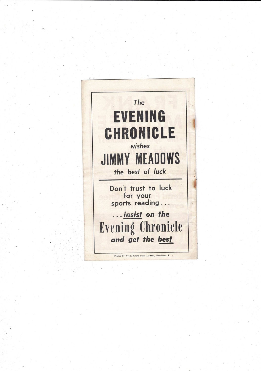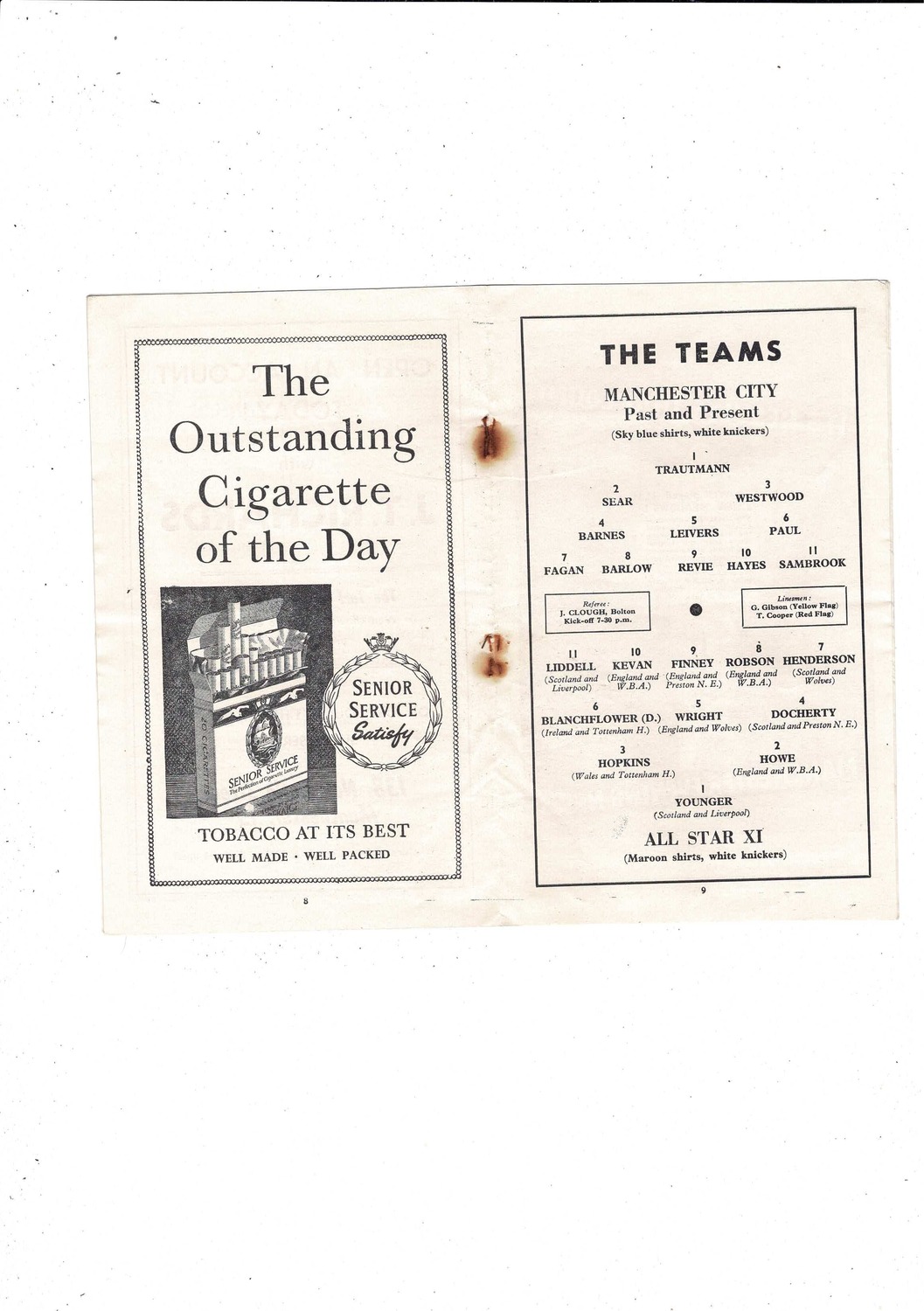 Manchester City v All Stars Jimmy Meadows Testimonial Football Programme 1957/58