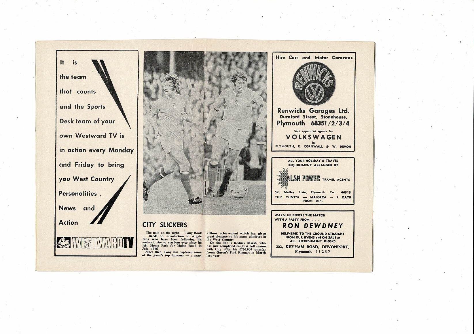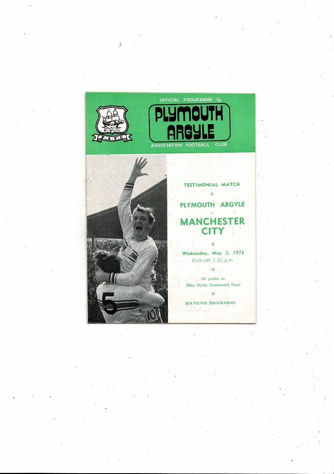 Plymouth v Manchster City Mike Bickle Testimonial Football Programme 1972/73
