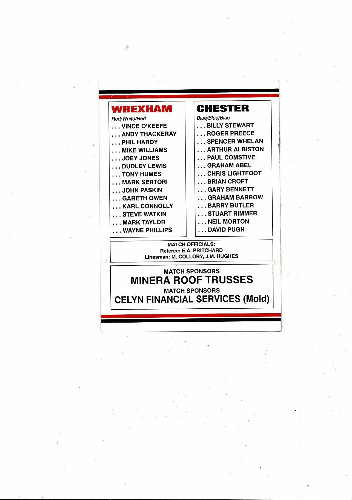 Wrexham v Chester Mike Williams Testimonial Football Programme 1991/92