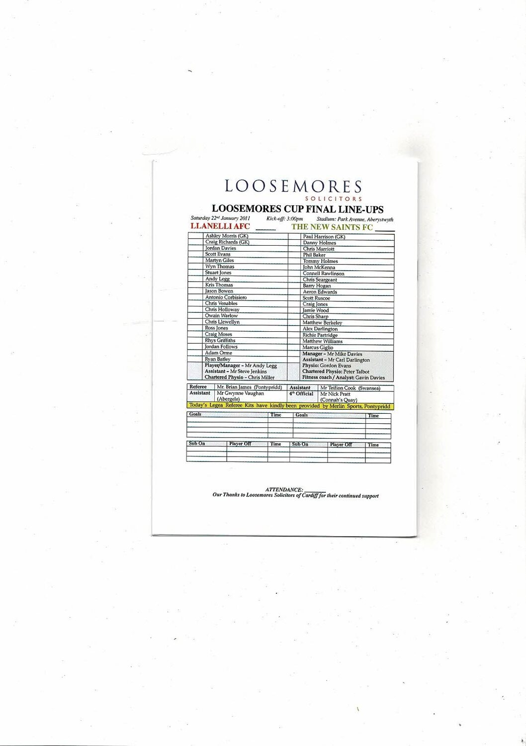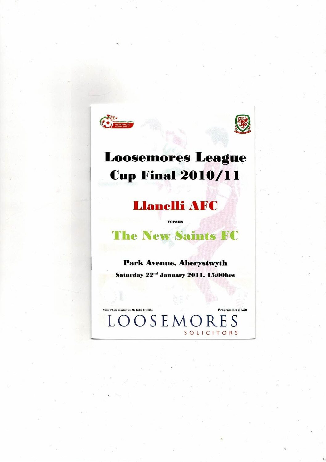 2011 Llanelli v New Saints Welsh League Cup Final Football Programme