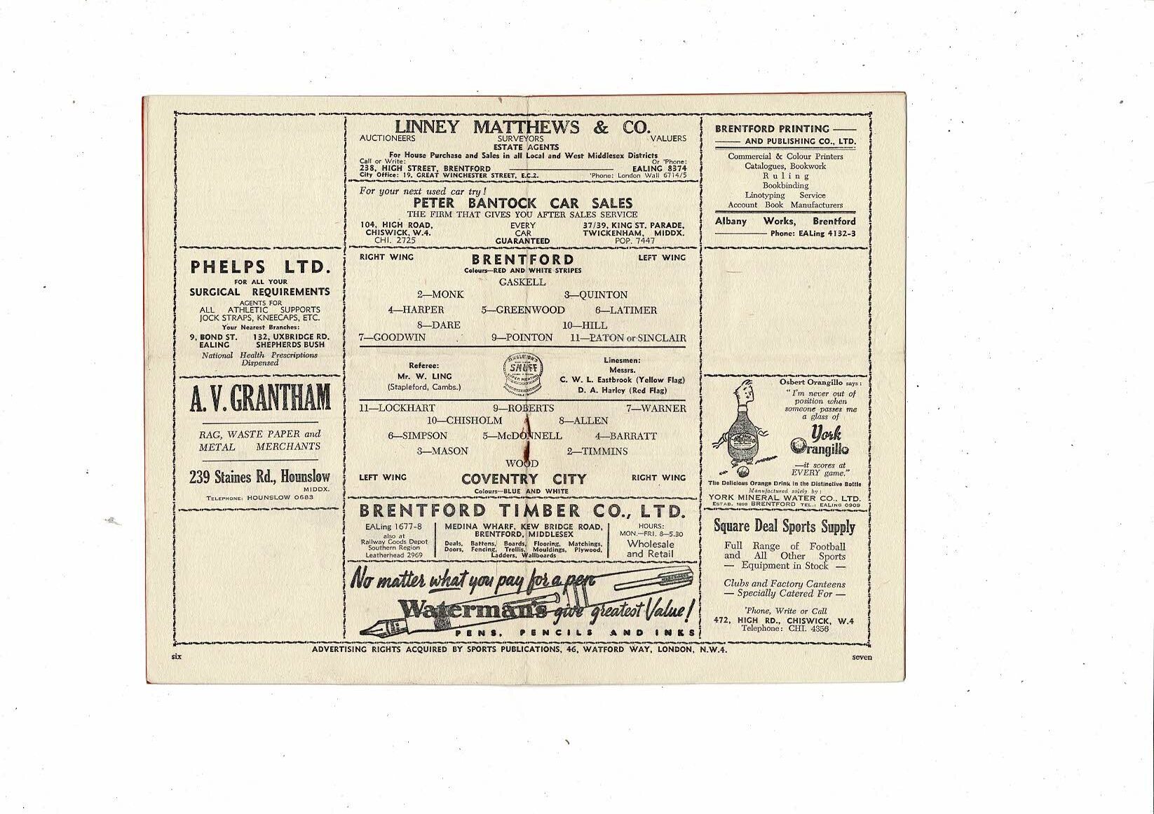 1950/51 Brentford v Coventry City Football Programme