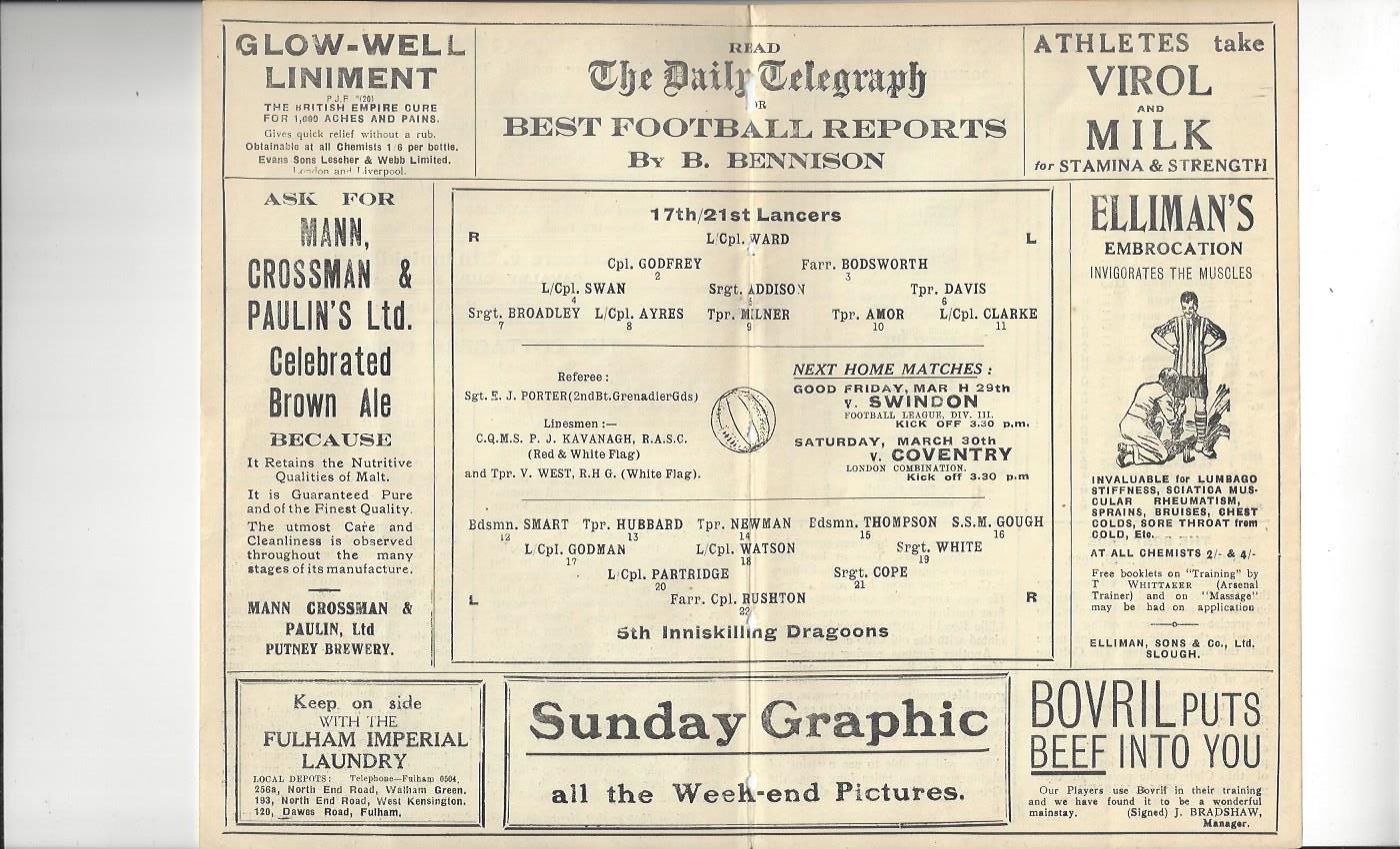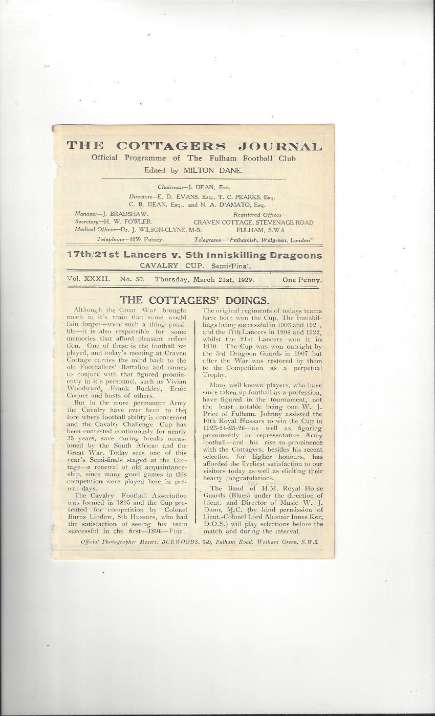 1928/29 17th/21st Lancers v 5th Inniskilling Dragoons Cavalry Cup Semi Final @ Fulham