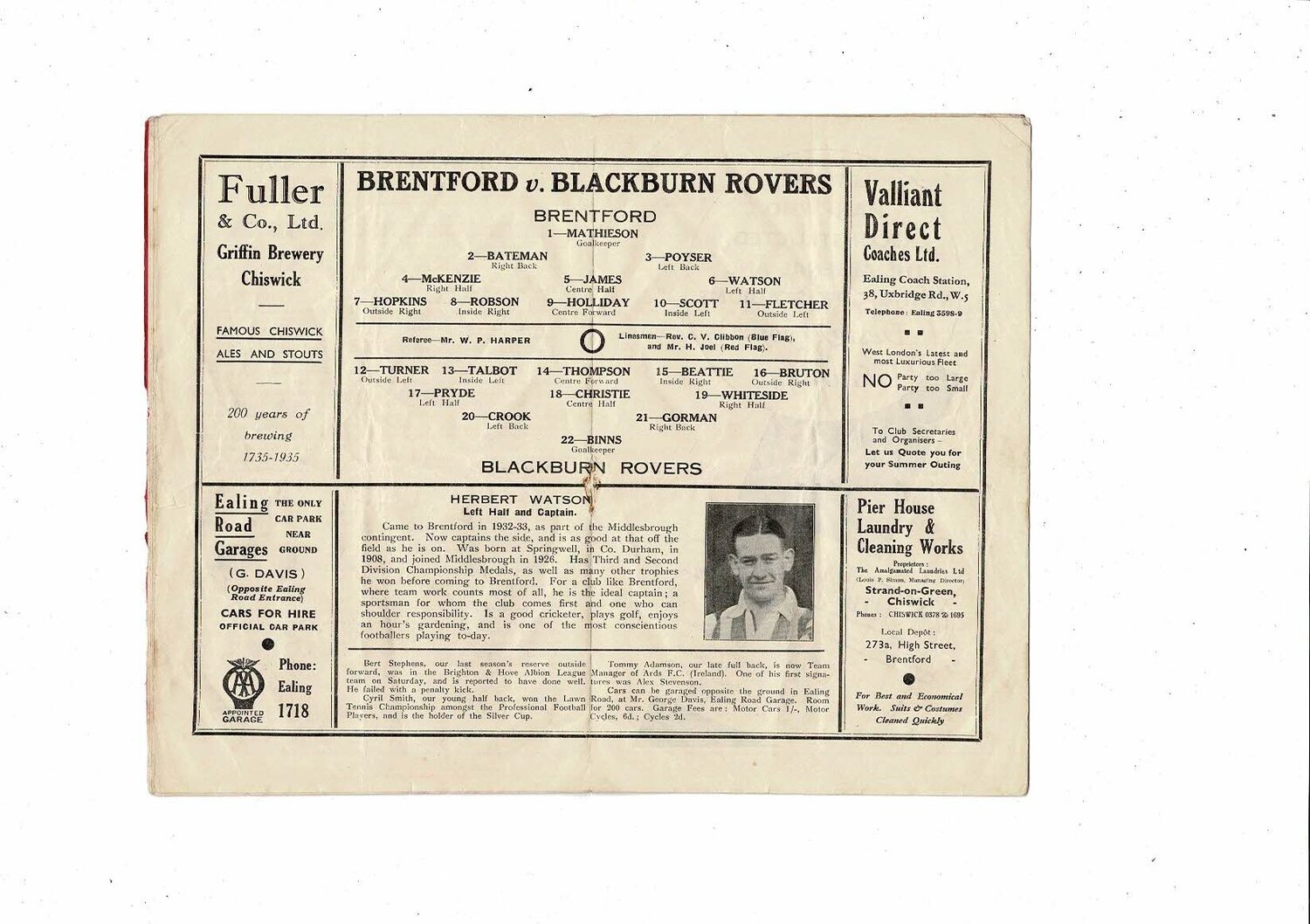 1935/36 Brentford v Blackburn Rovers Football Programme