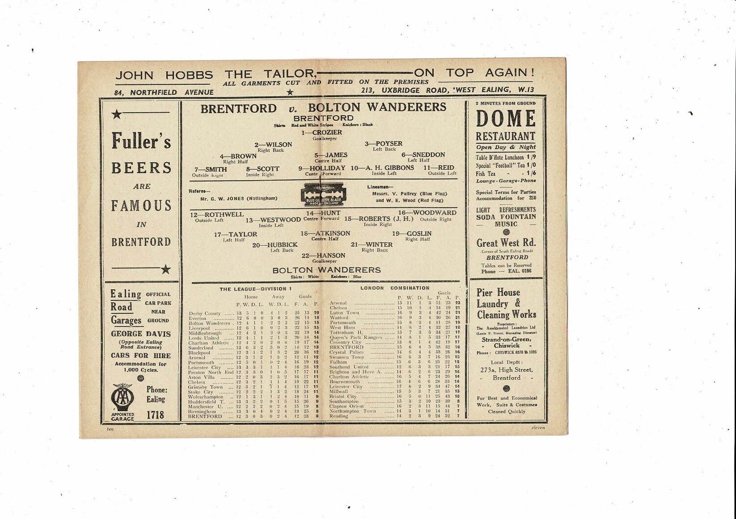 1938/39 Brentford v Bolton Wanderers Football Programme