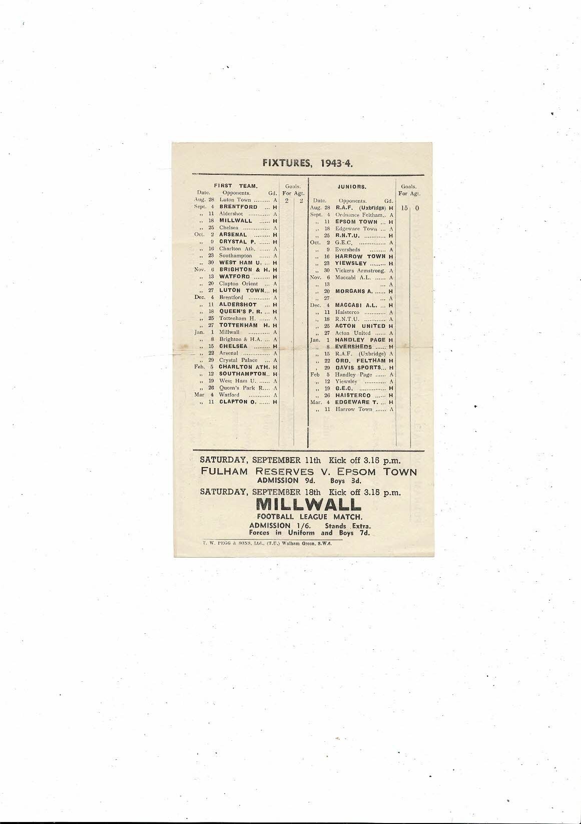 This Original single sheet Football Programme is creased also has a fold with some staining, several small tears on edge & two team change. Please see scans