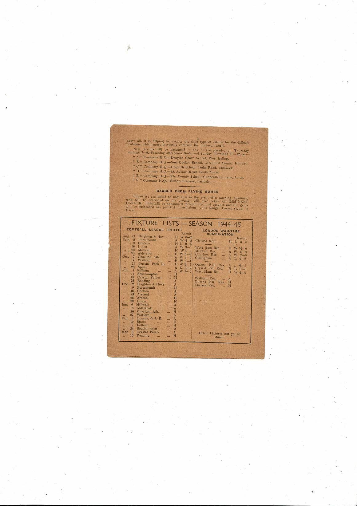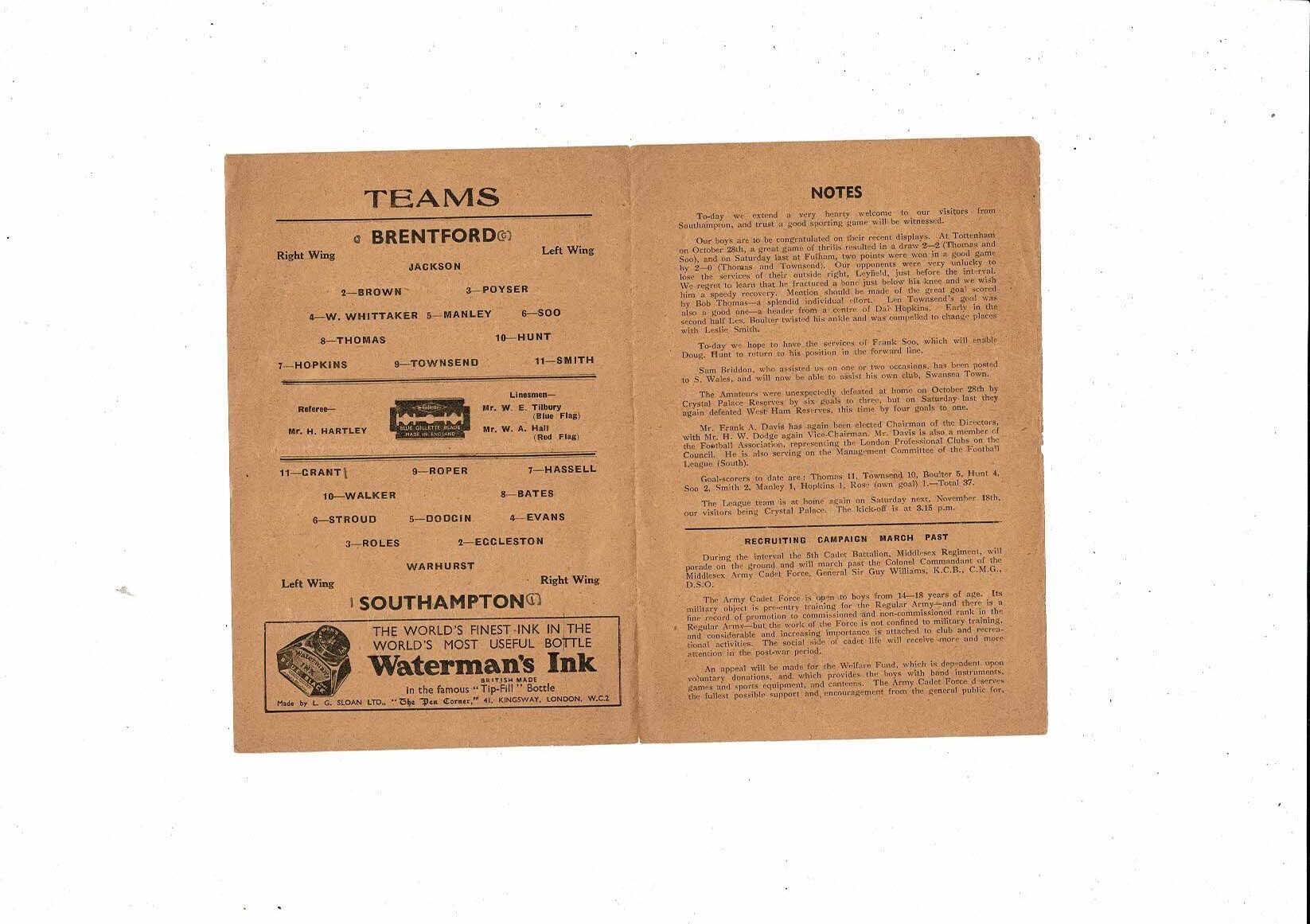 1944/45 Brentford v Southampton Football Programme
