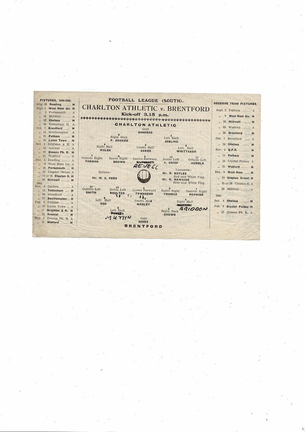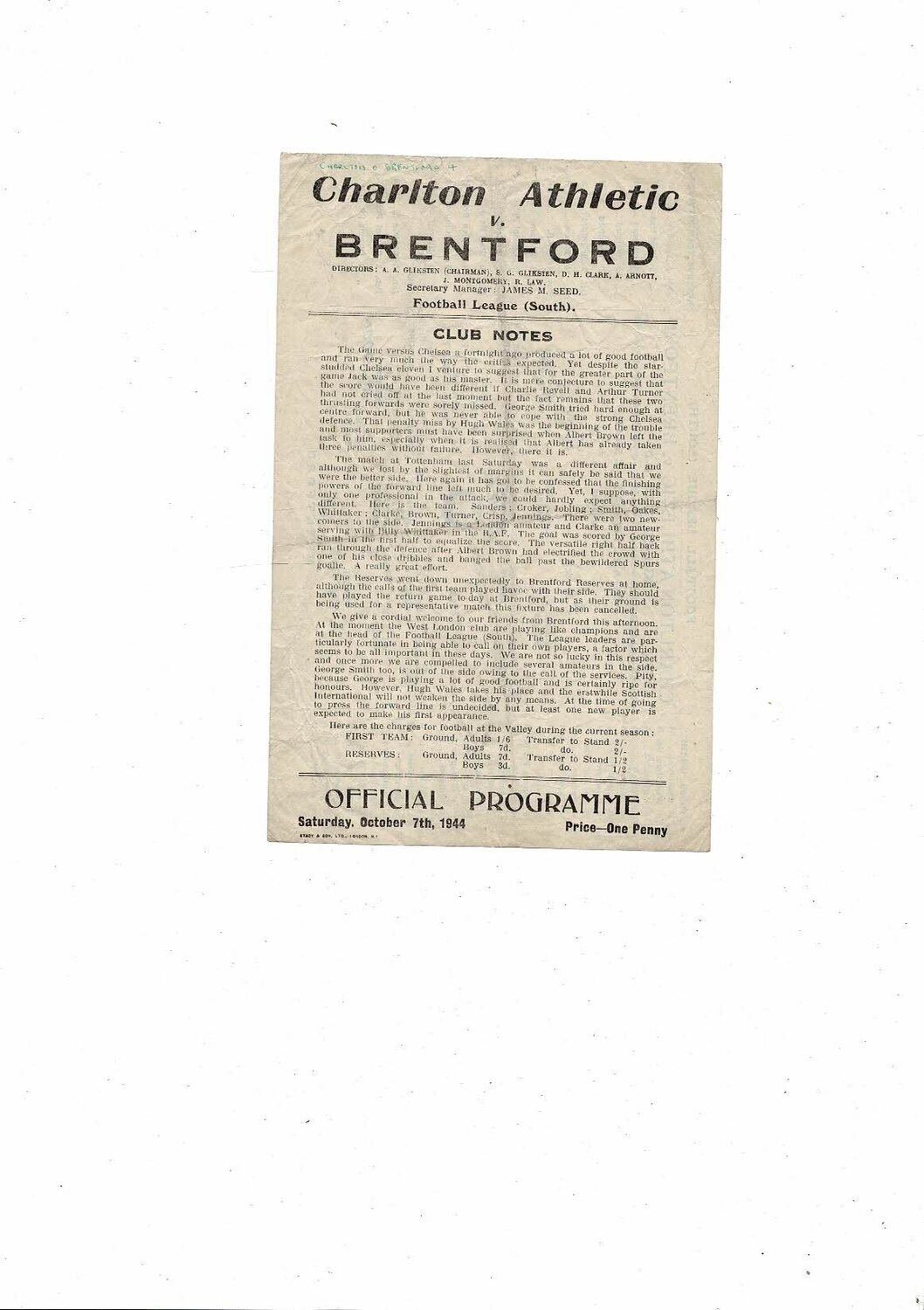 This original single sheet Football Programme is creased & folded with some staining, score on front, scorers & team changes noted. Please see scans.